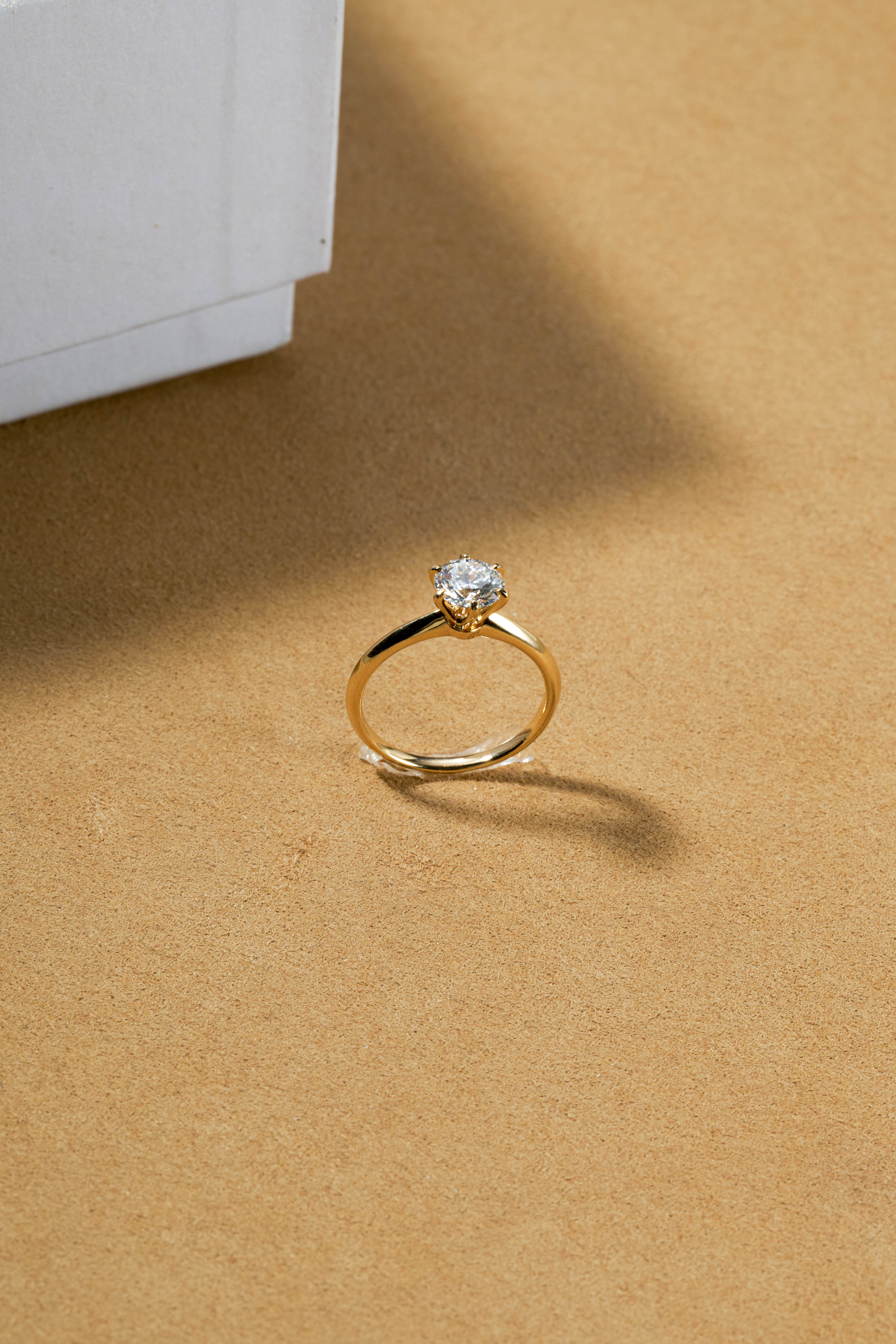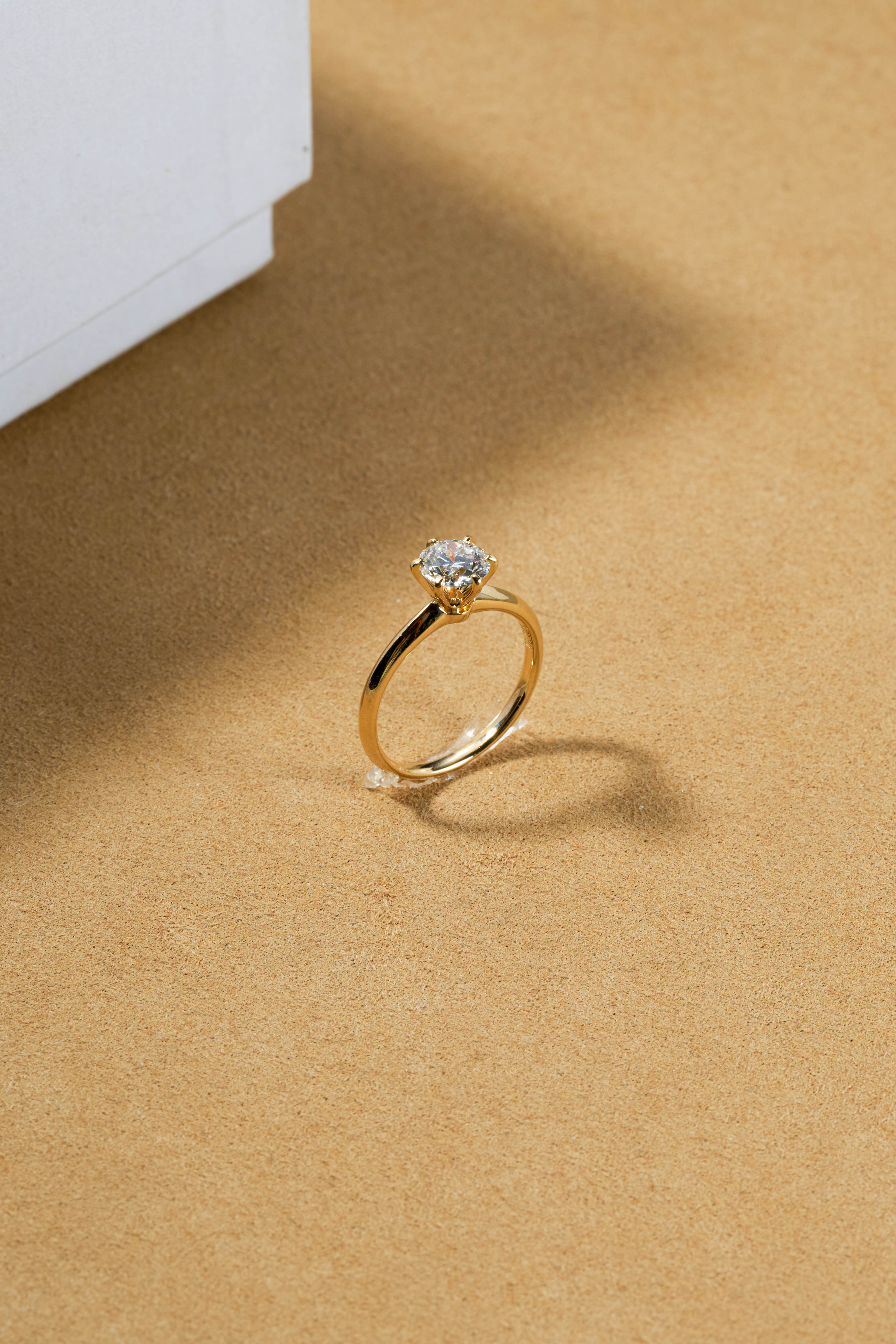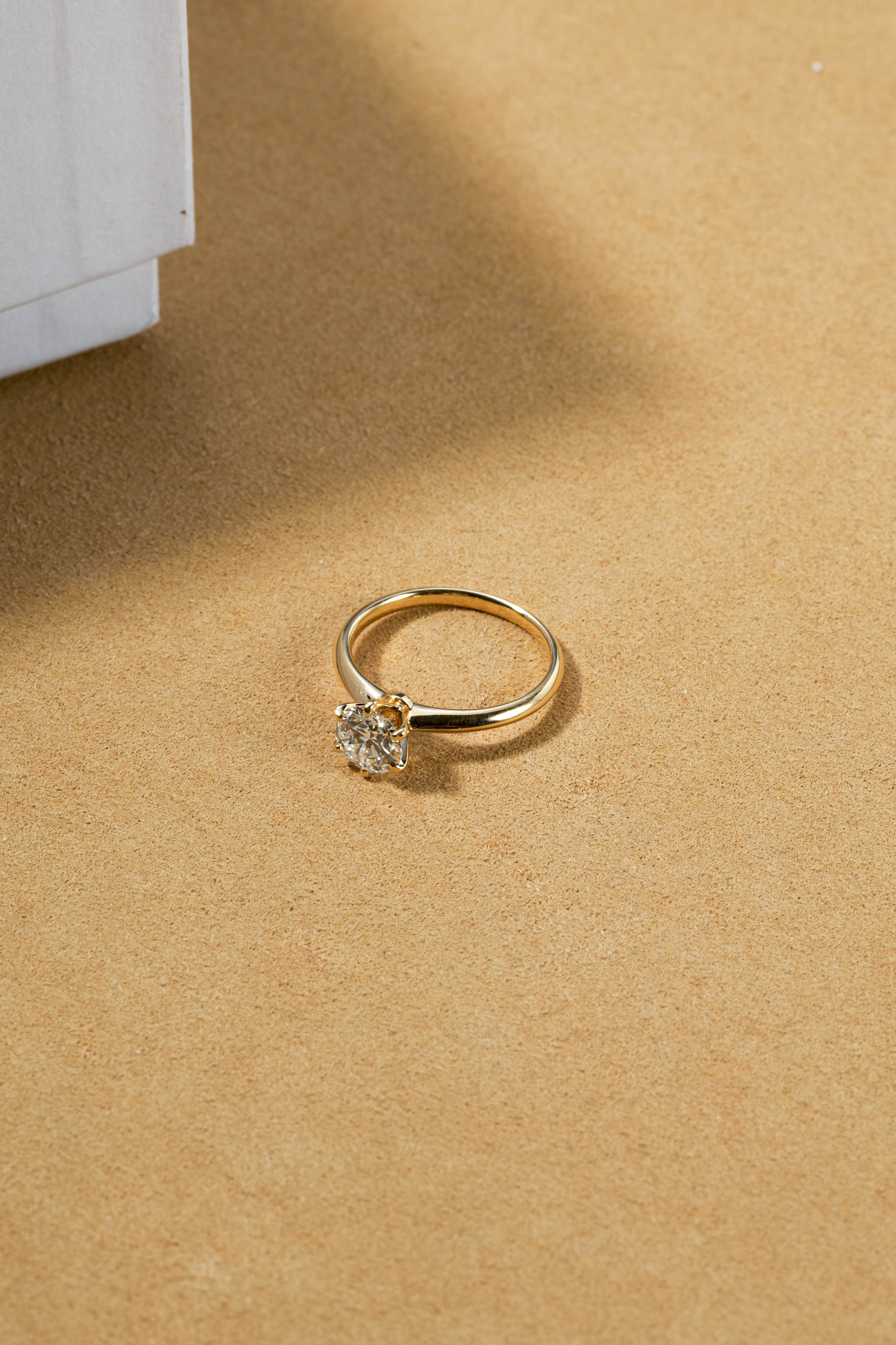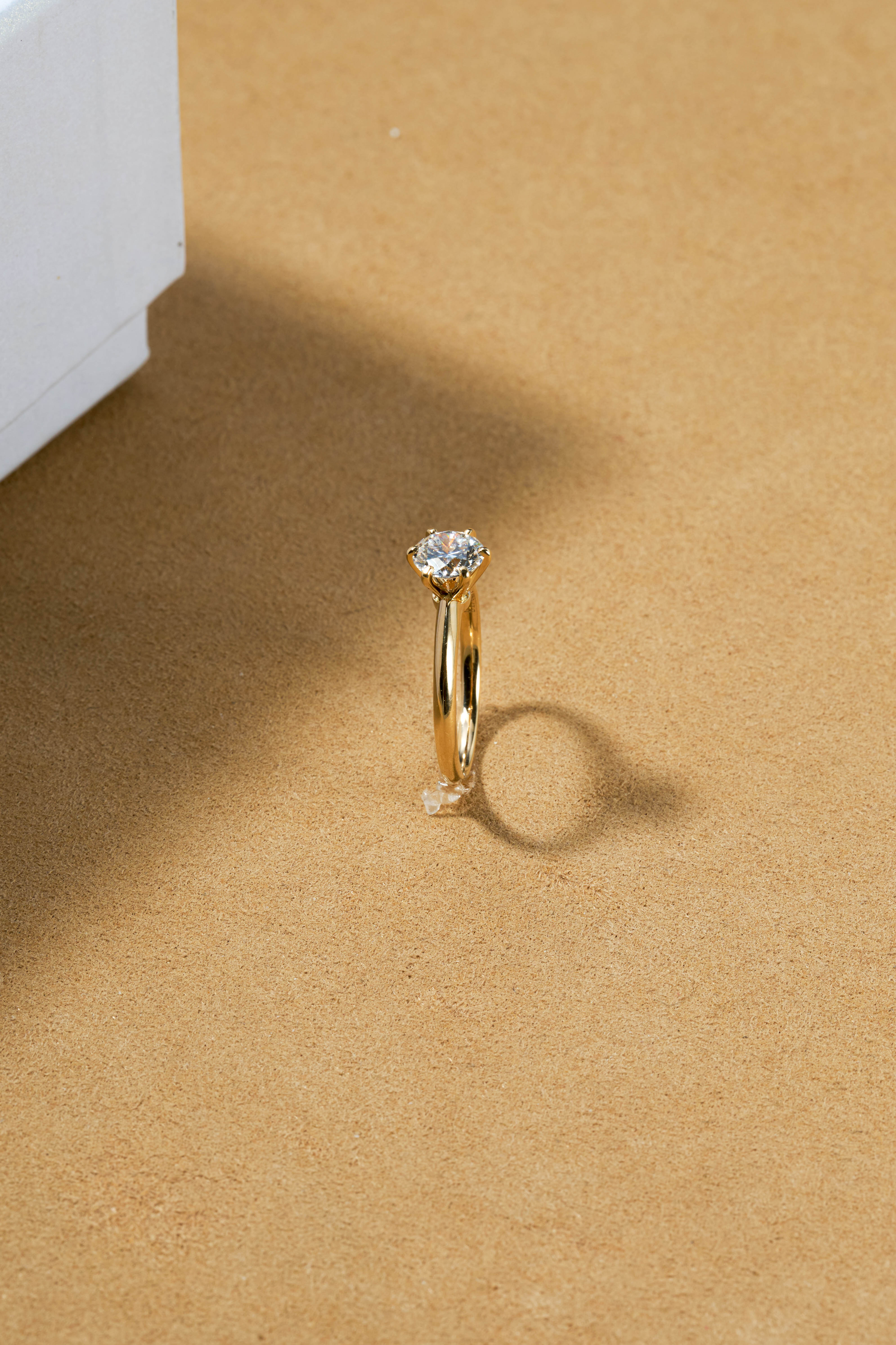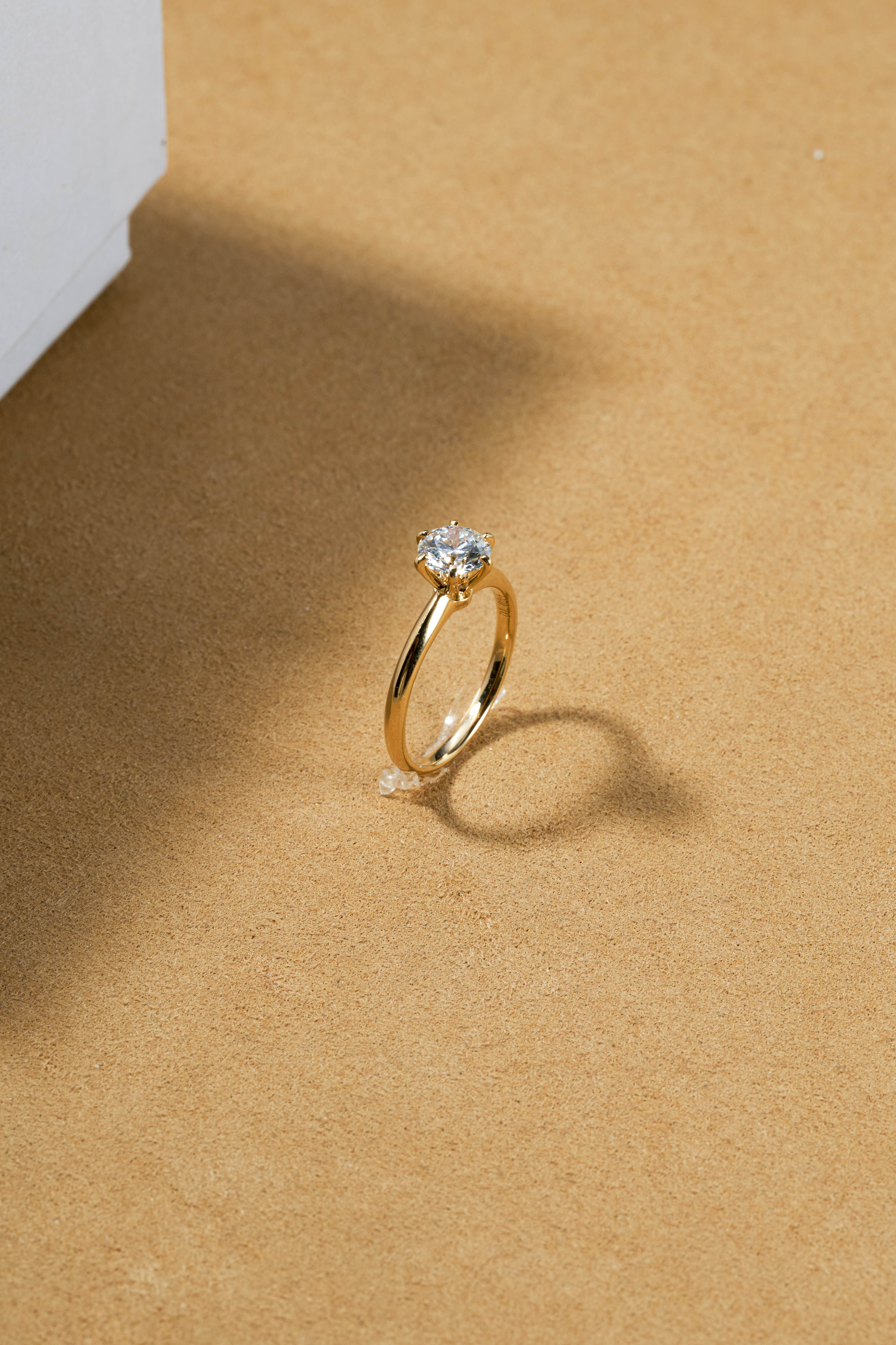 Yellow Gold Round Single Diamond Six-Prong Ring