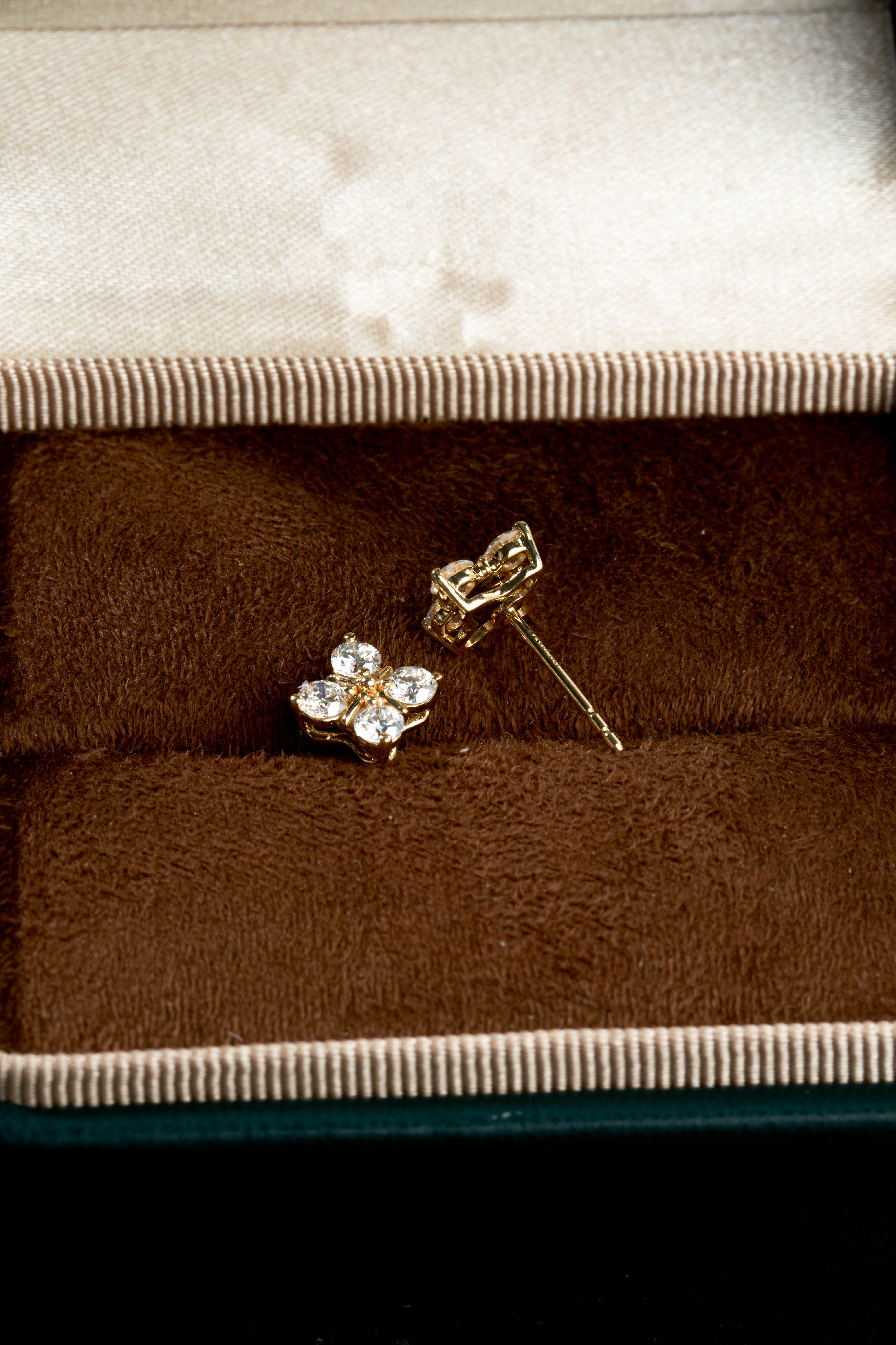 Yellow Gold Four-Leaf Clover Stud Earrings