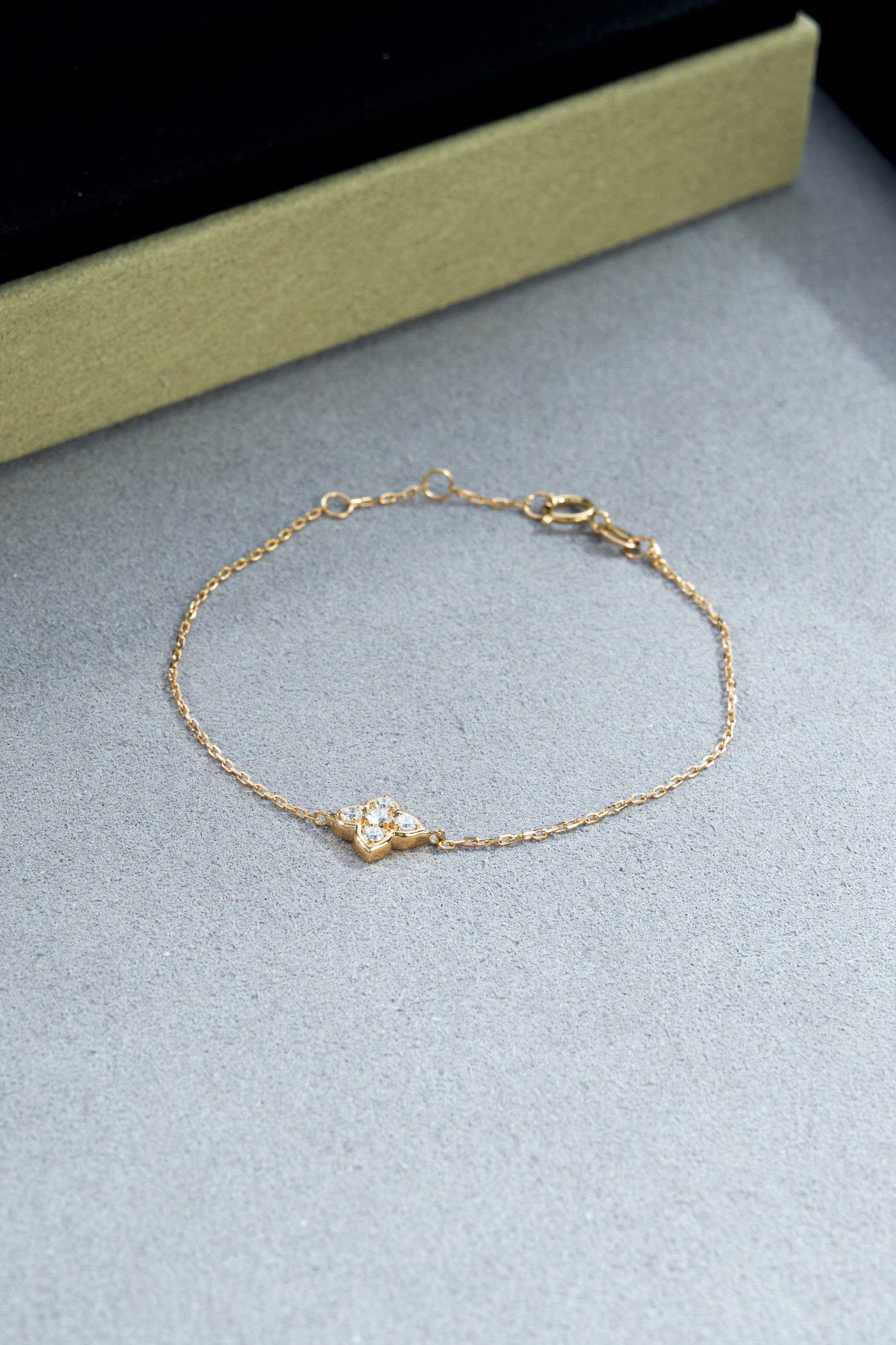 Yellow Gold Clover Round Diamond Bracelet