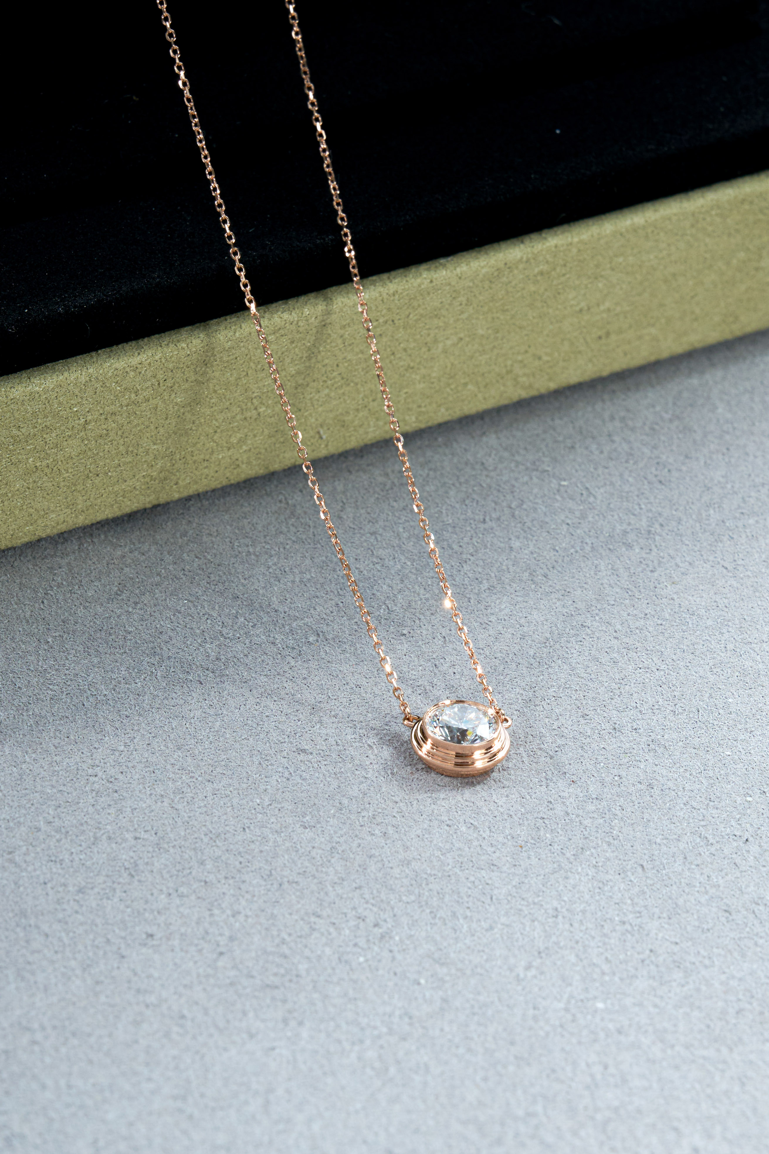 Rose Gold UFO Single Diamond Necklace