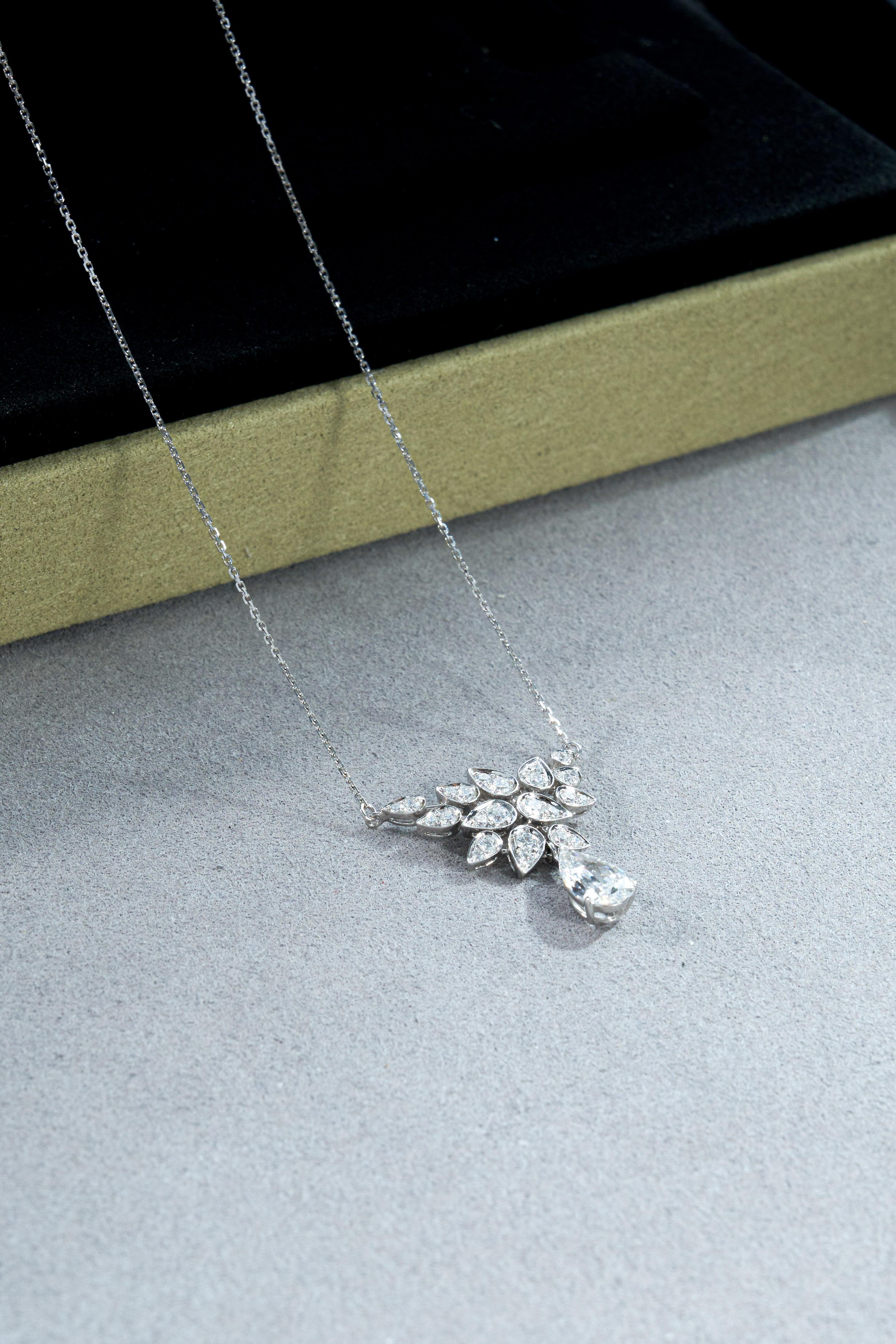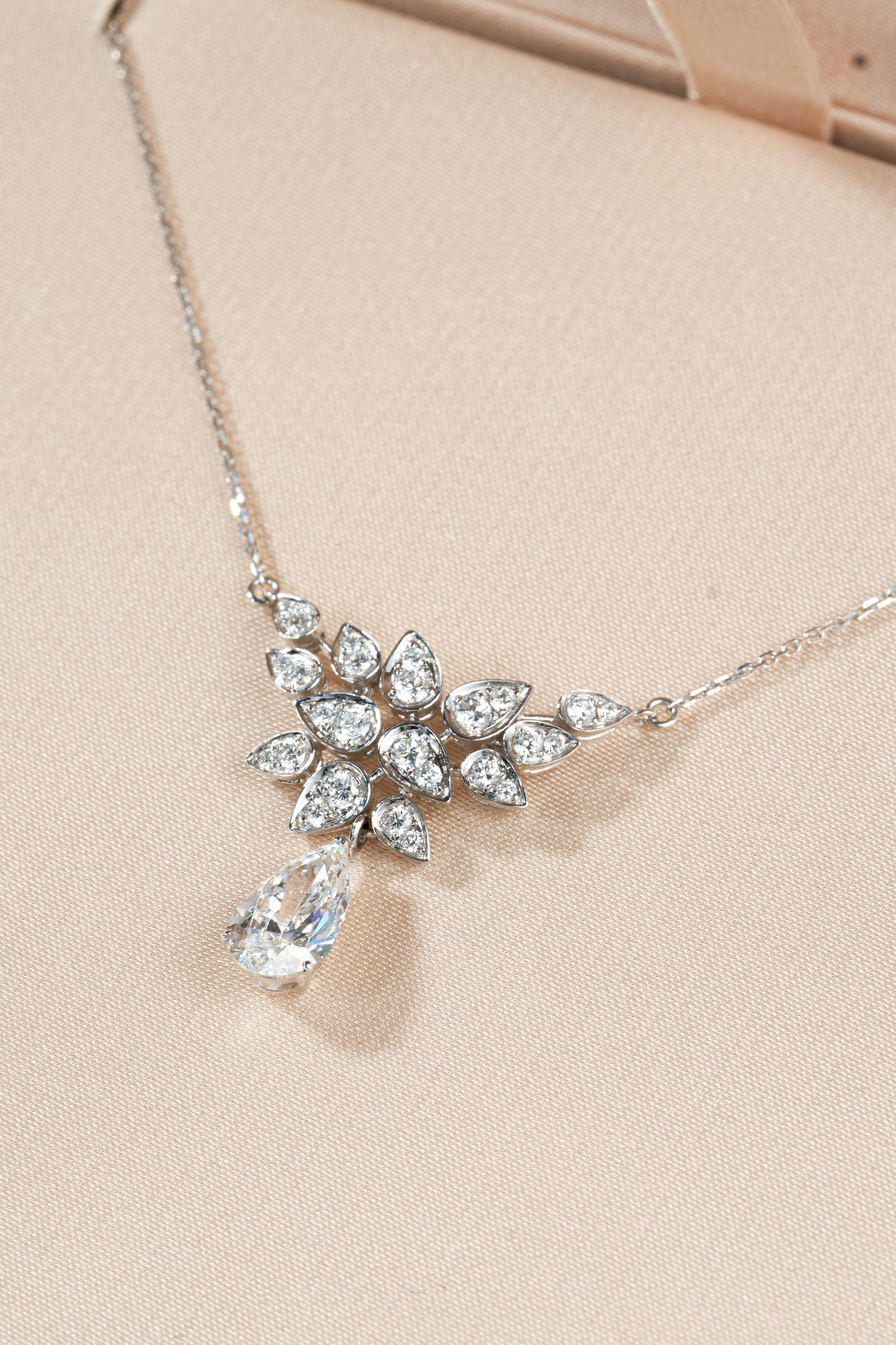 White Gold Pave Diamond Flower Center Necklace