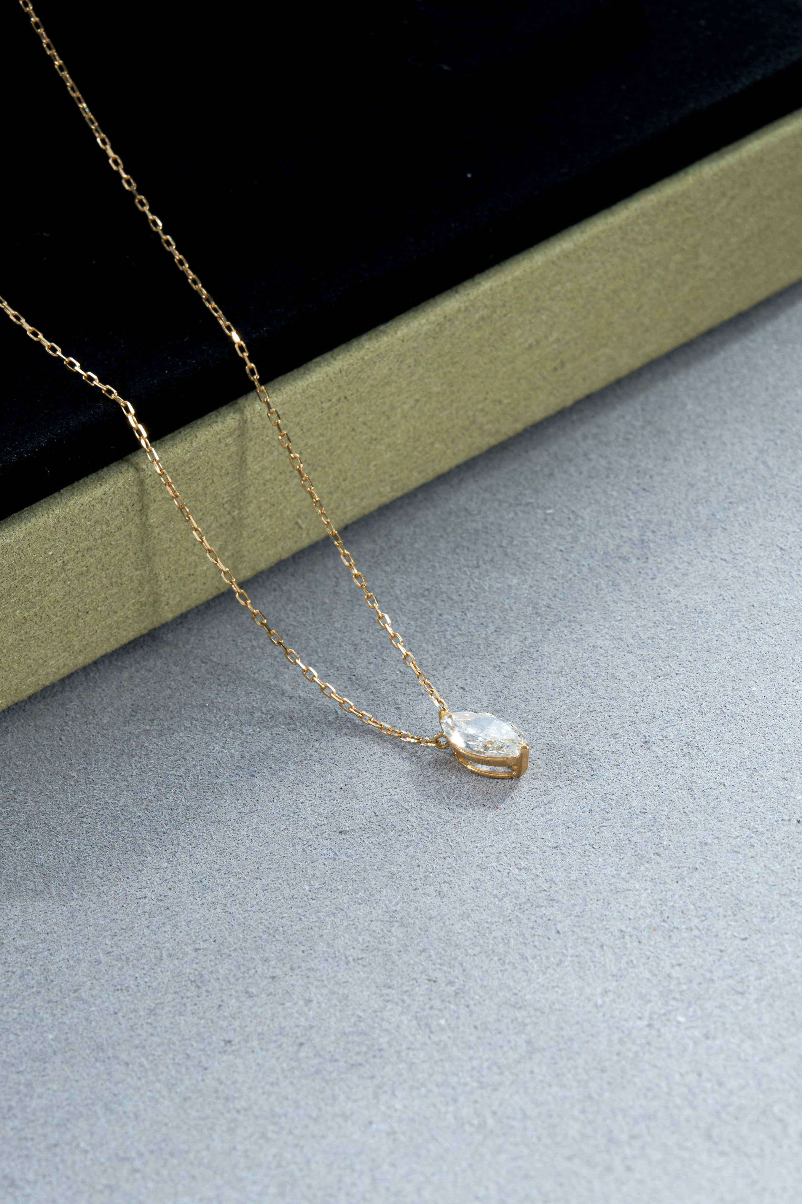 Yellow Gold Marquise Cut Solitaire Necklace