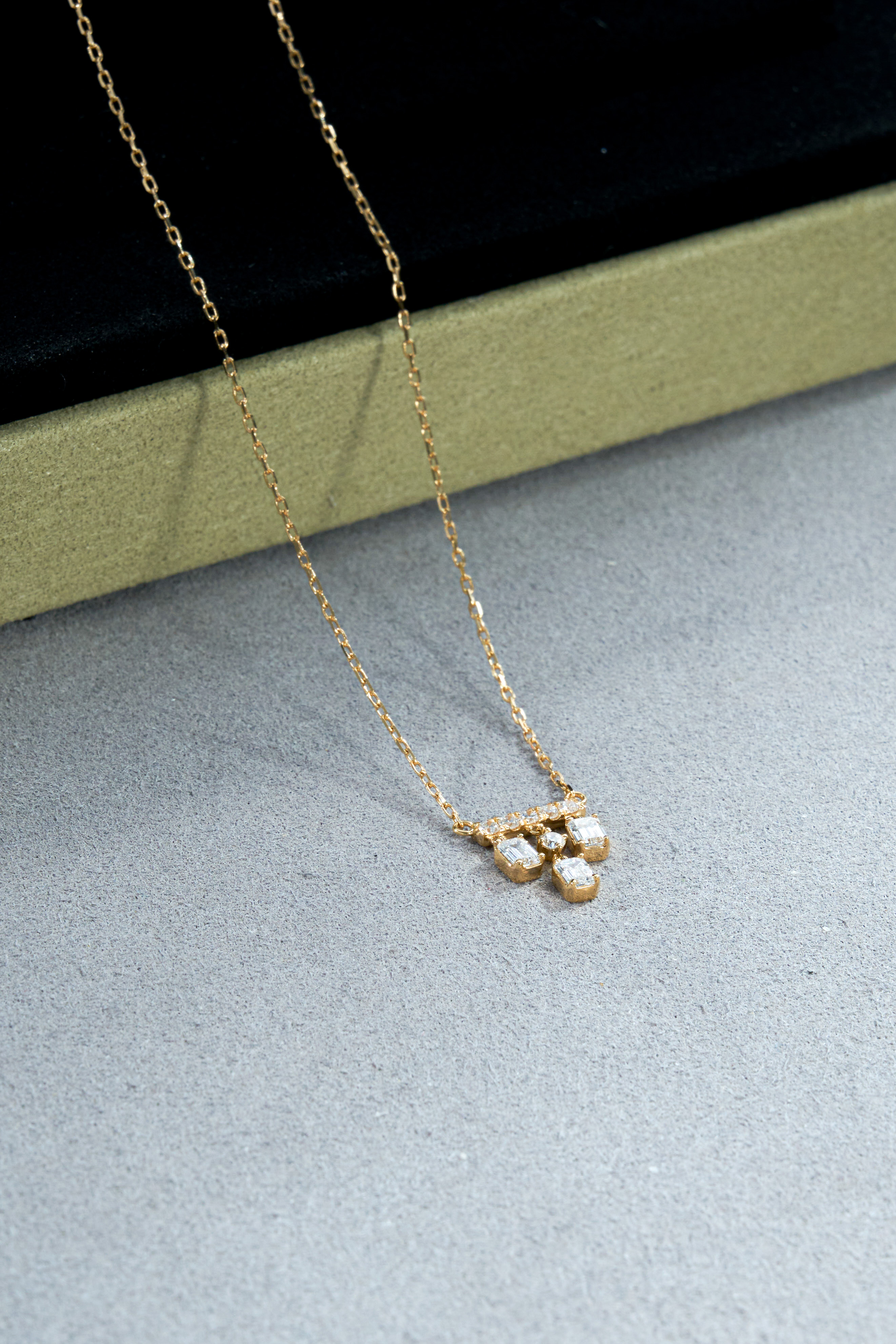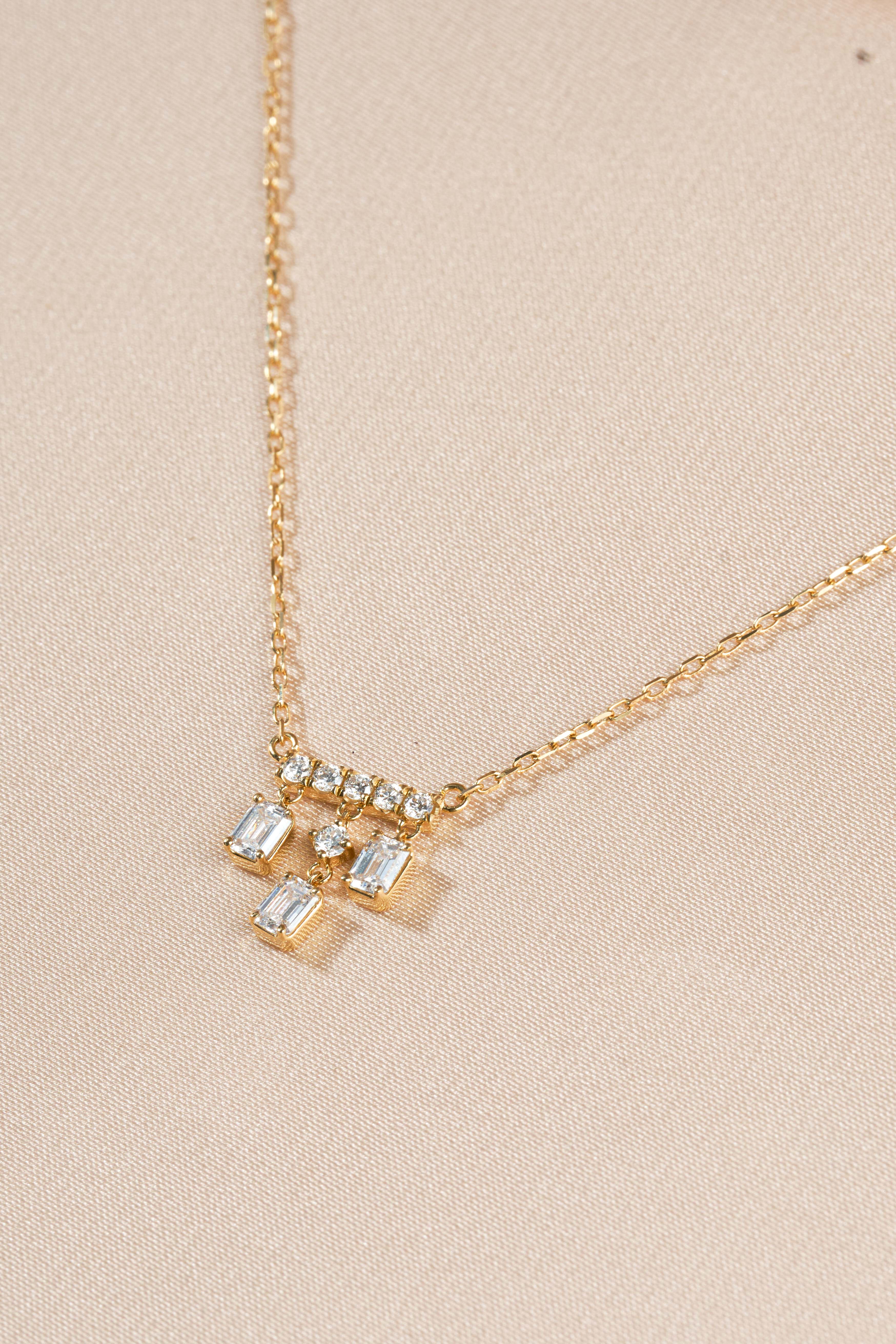 Yellow Gold Three Emerald Cut Diamonds Necklace