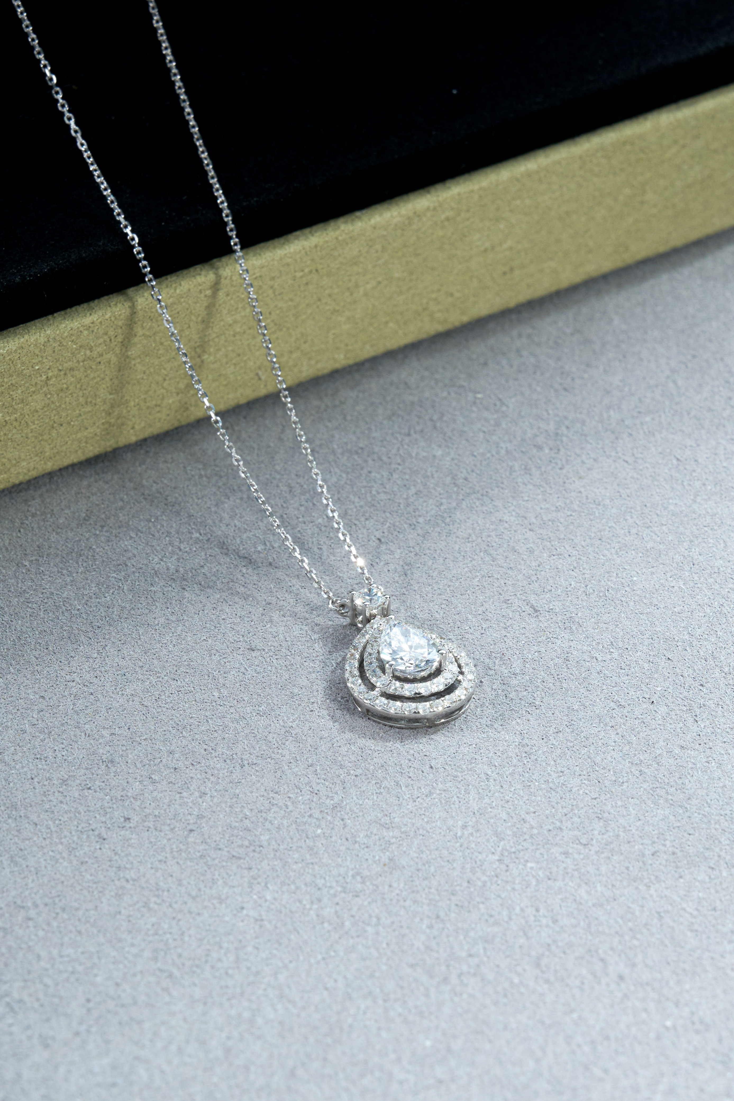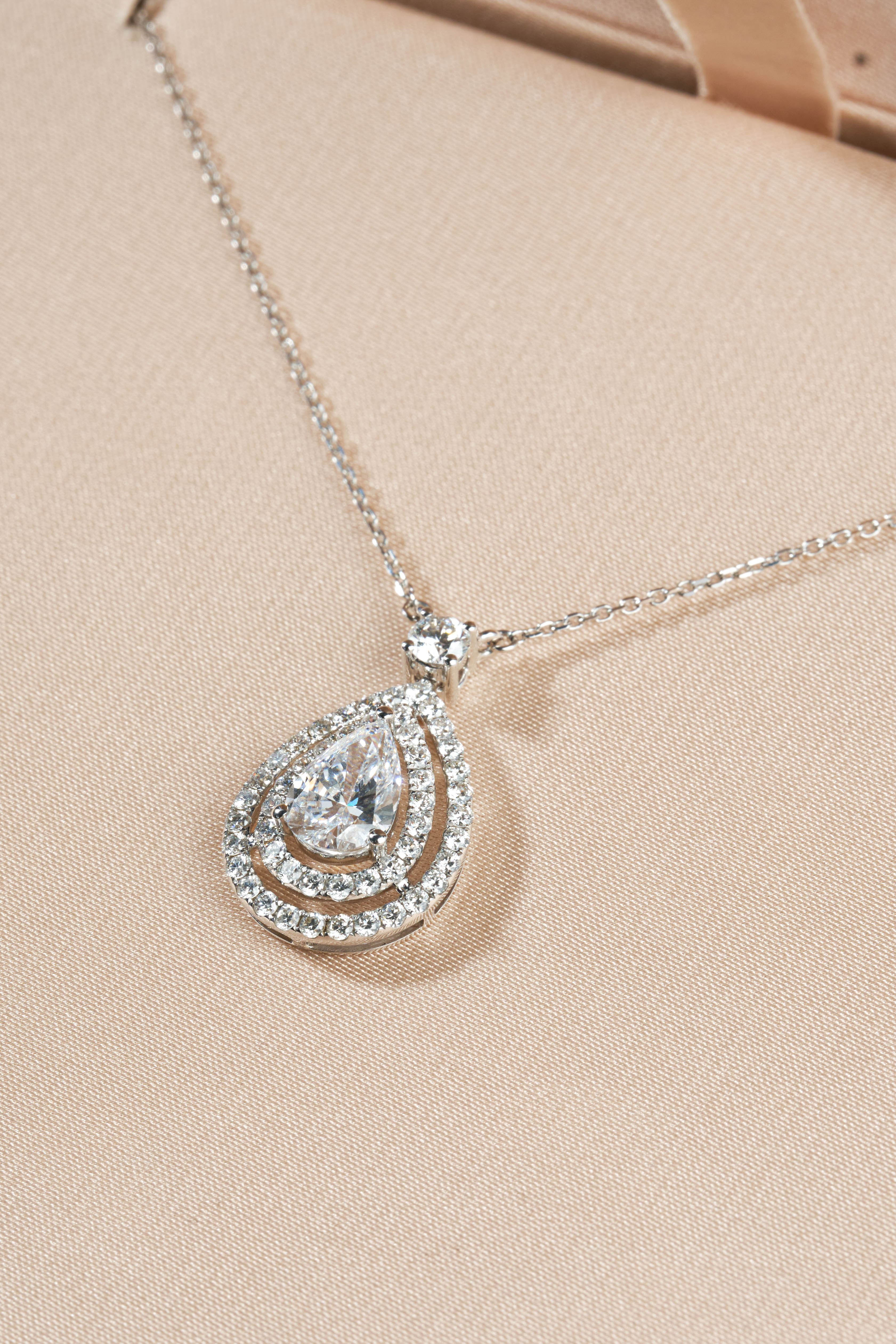 White Gold Pear Shape Pave Diamond Necklace