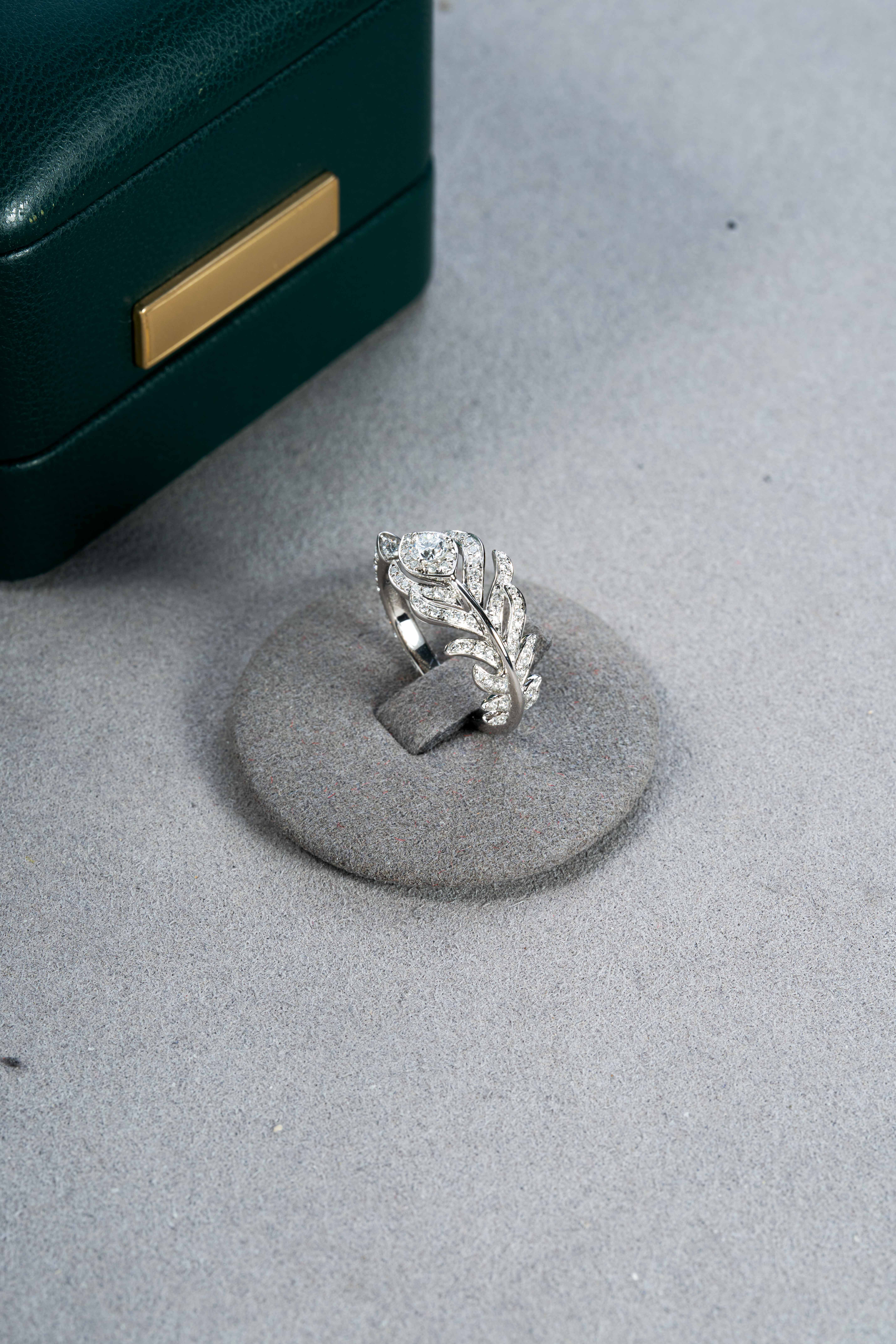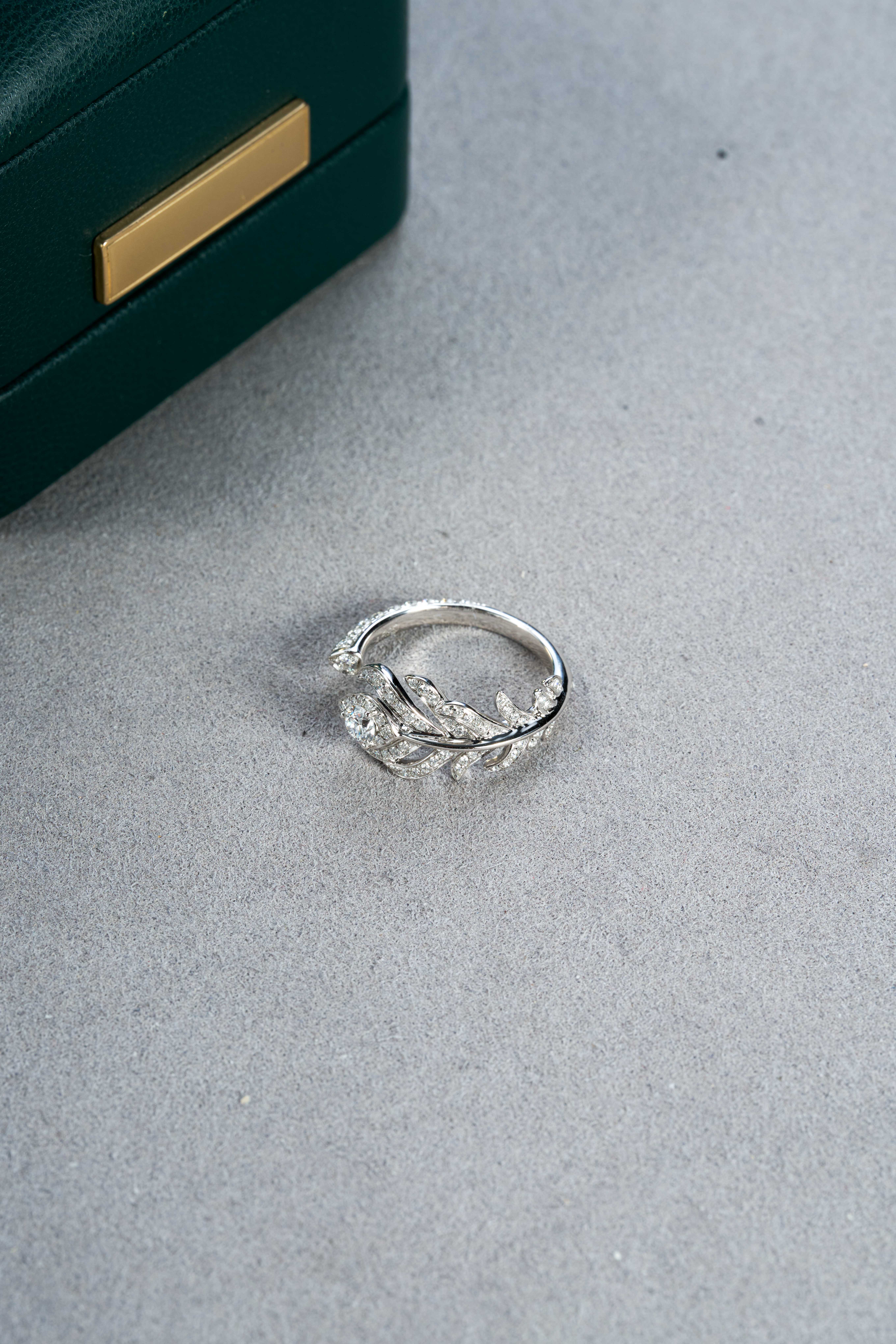 White Gold Pave Diamond Feather Ring9