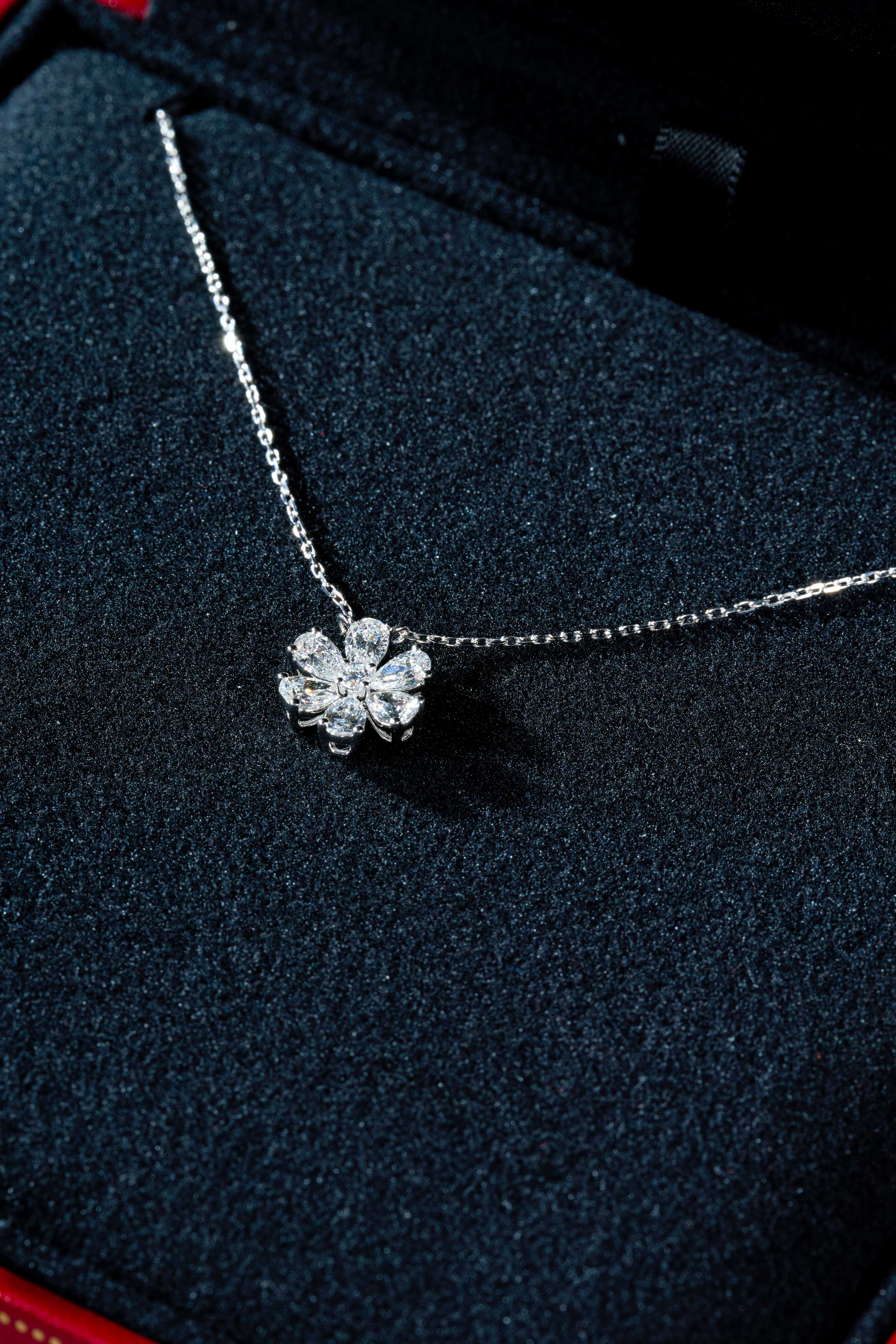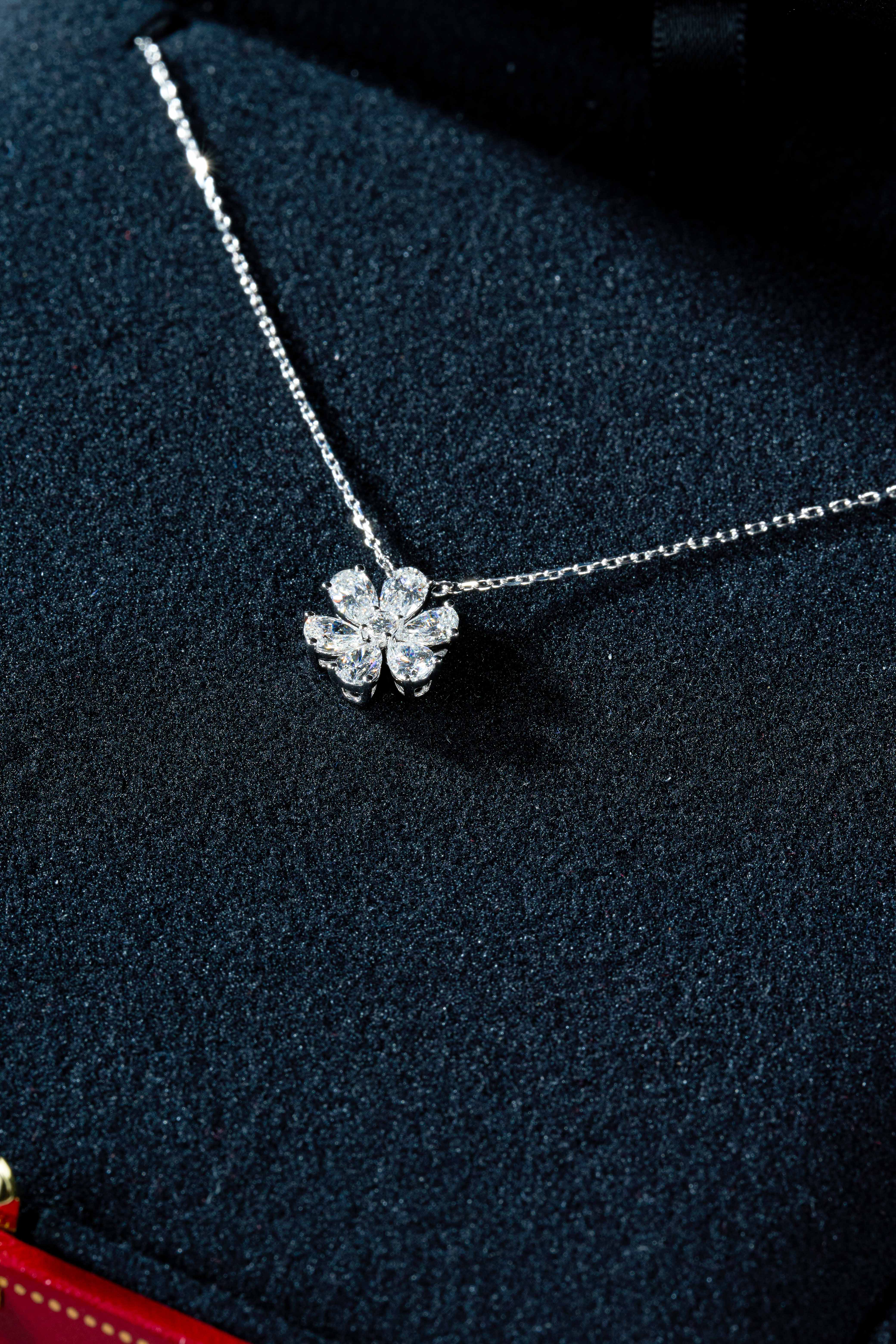 White Gold Flower 6-Diamond Necklace