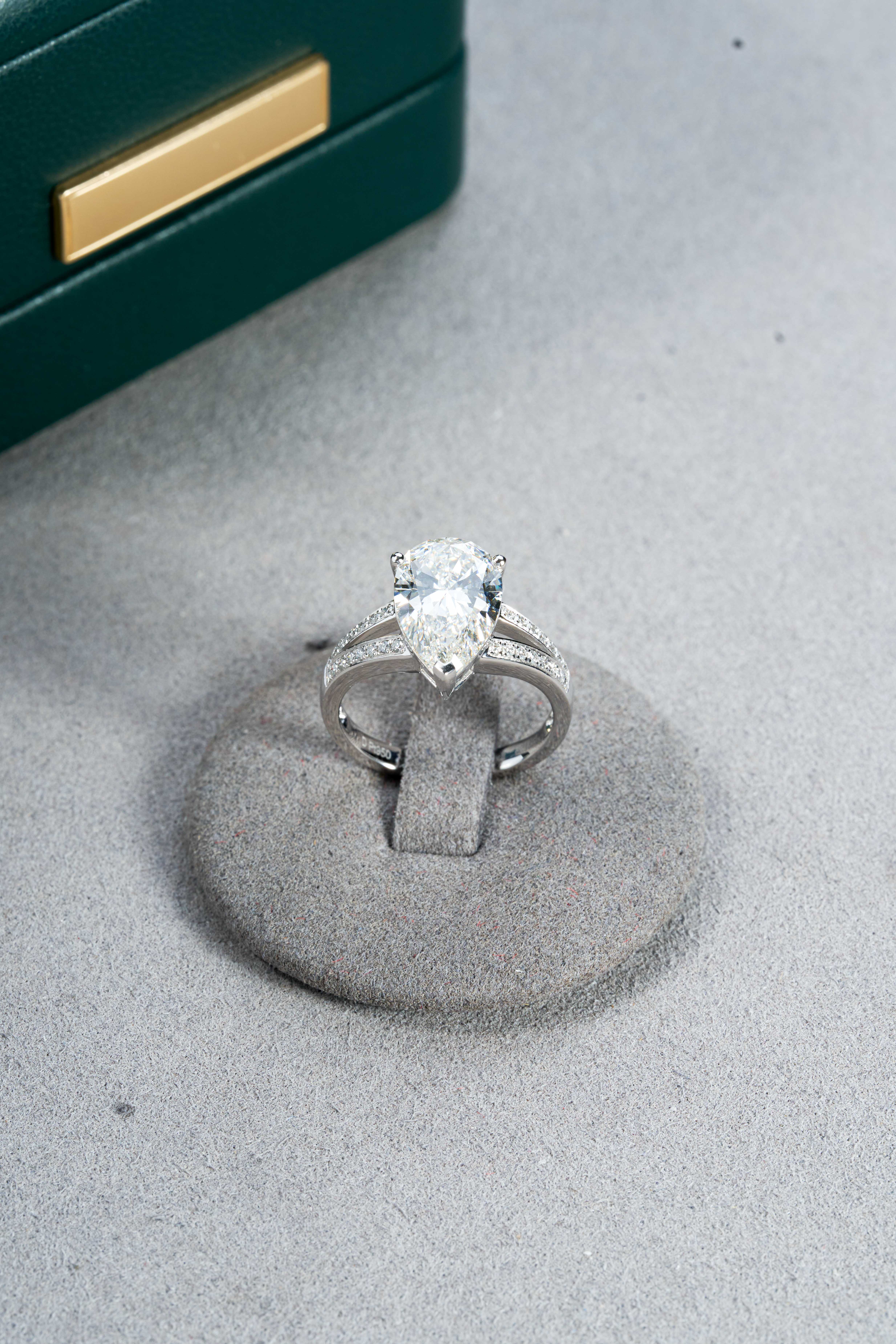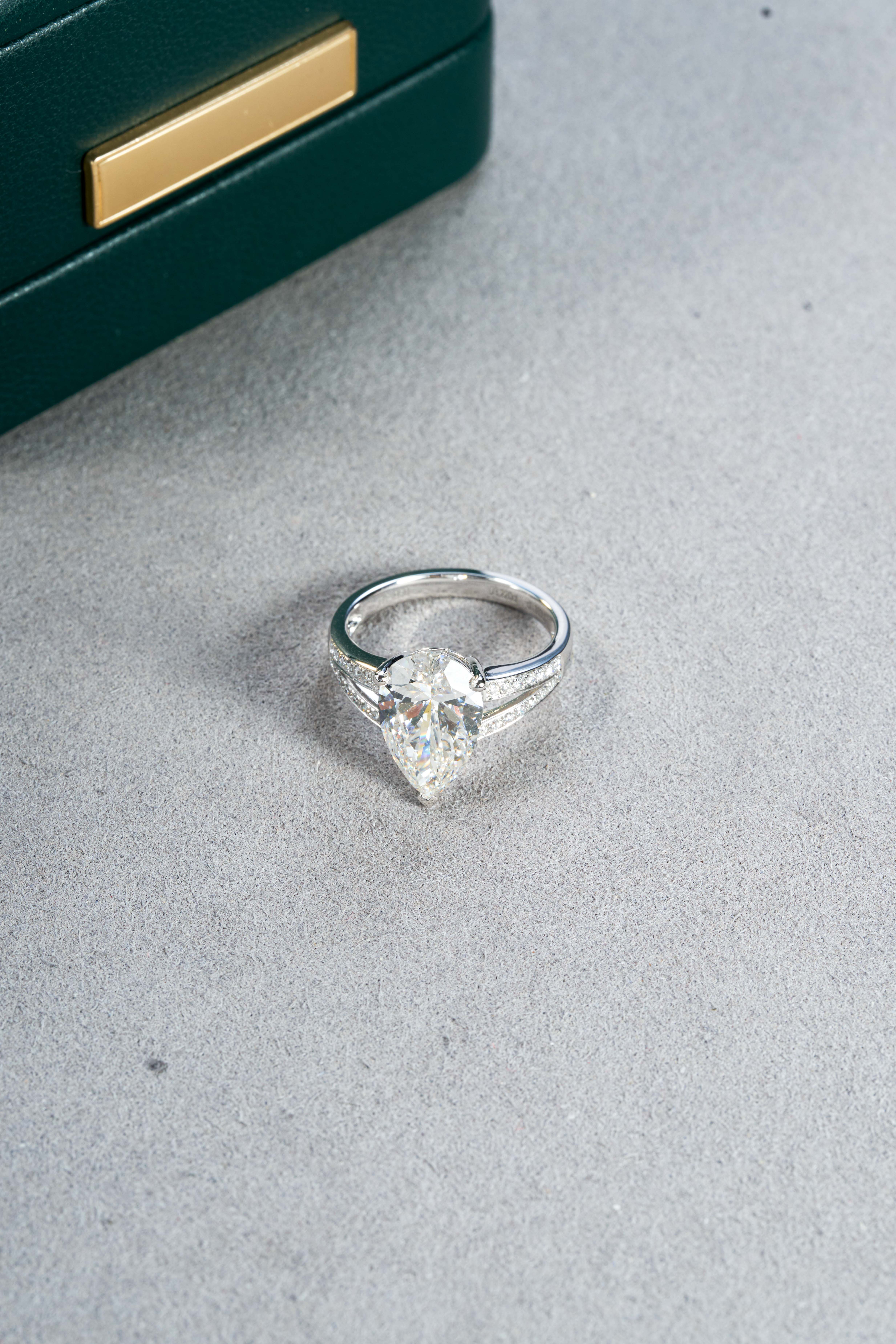 White Gold Double Band Pear Cut Full Diamond Ring