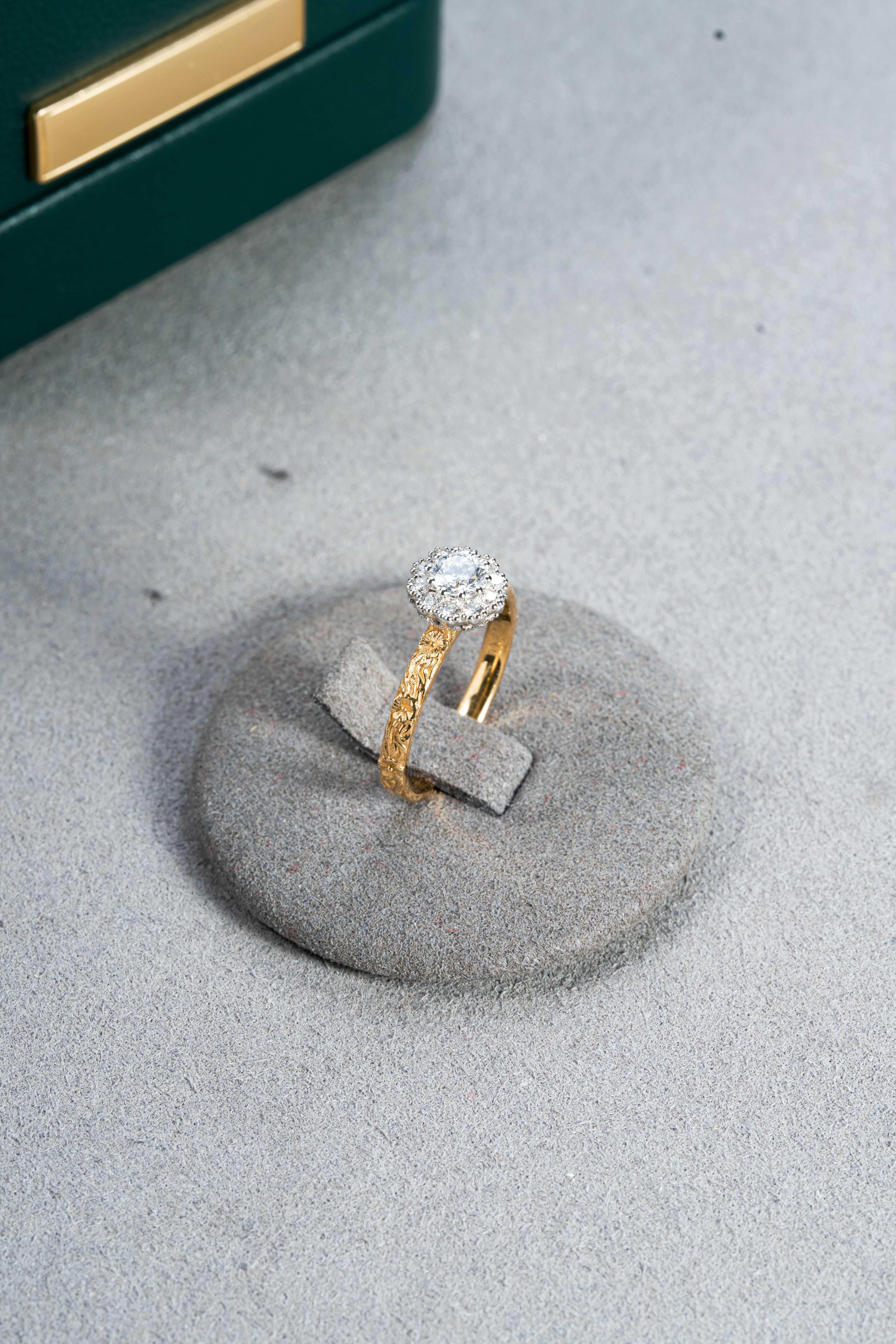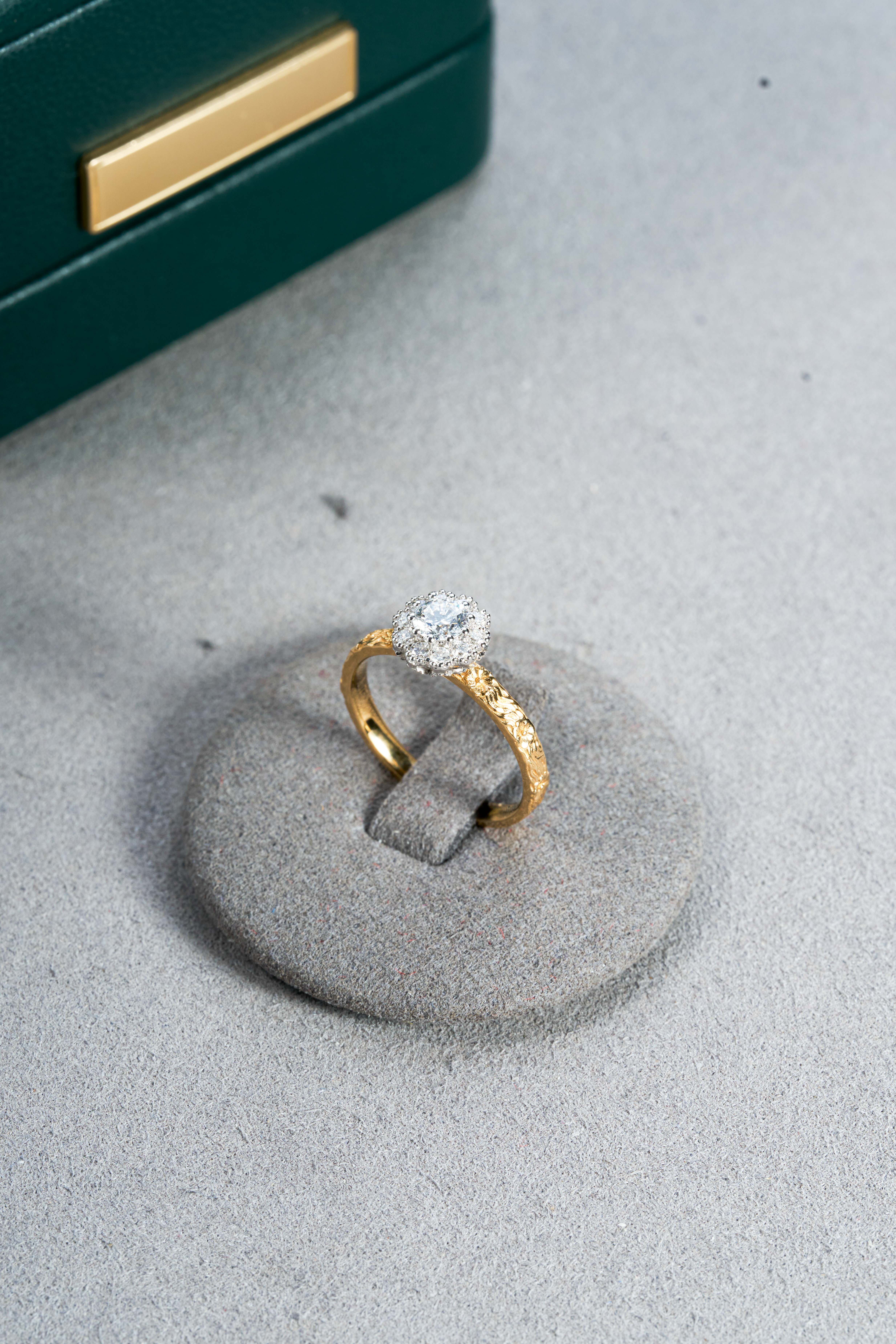 Yellow Gold Round Halo Diamond Ring