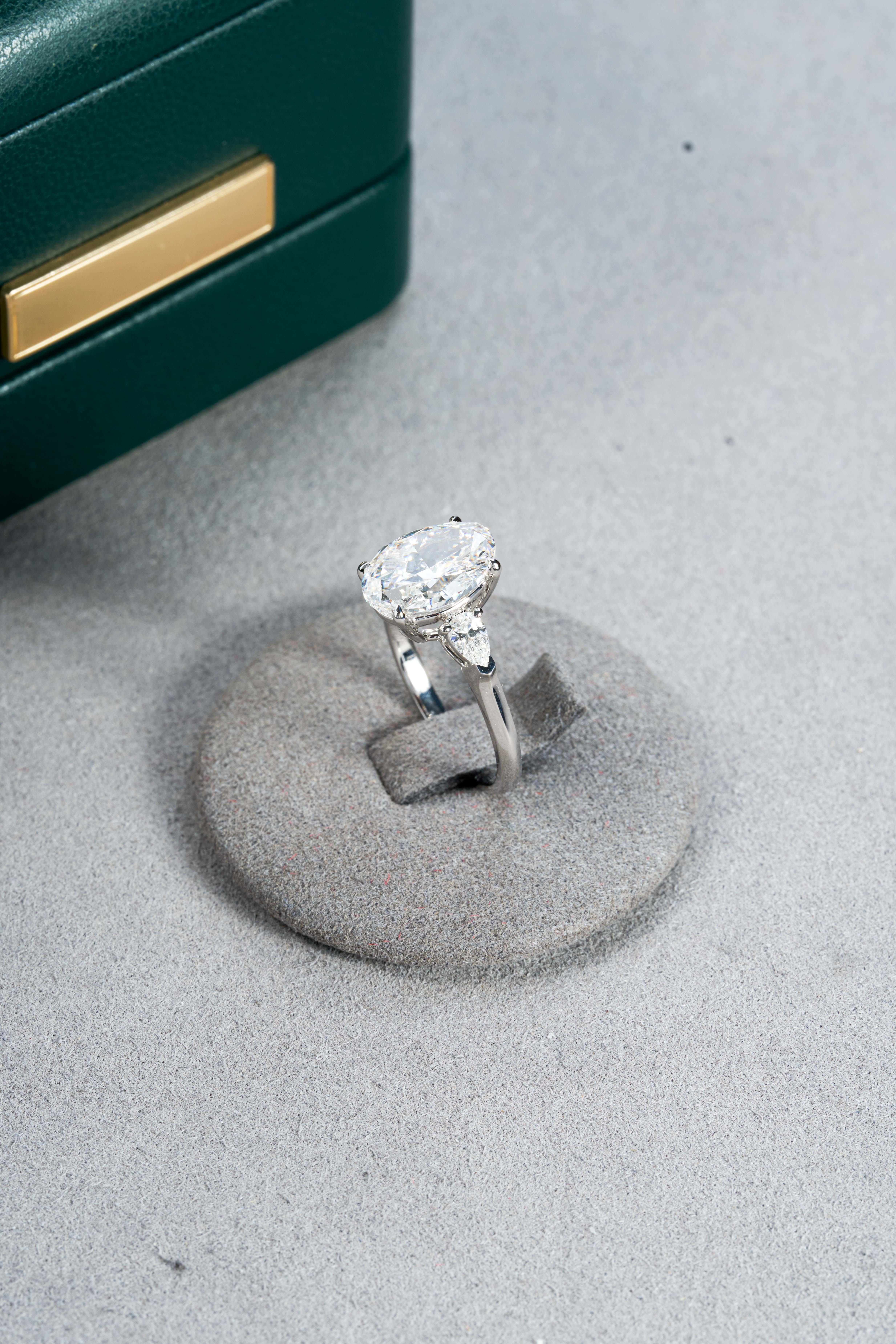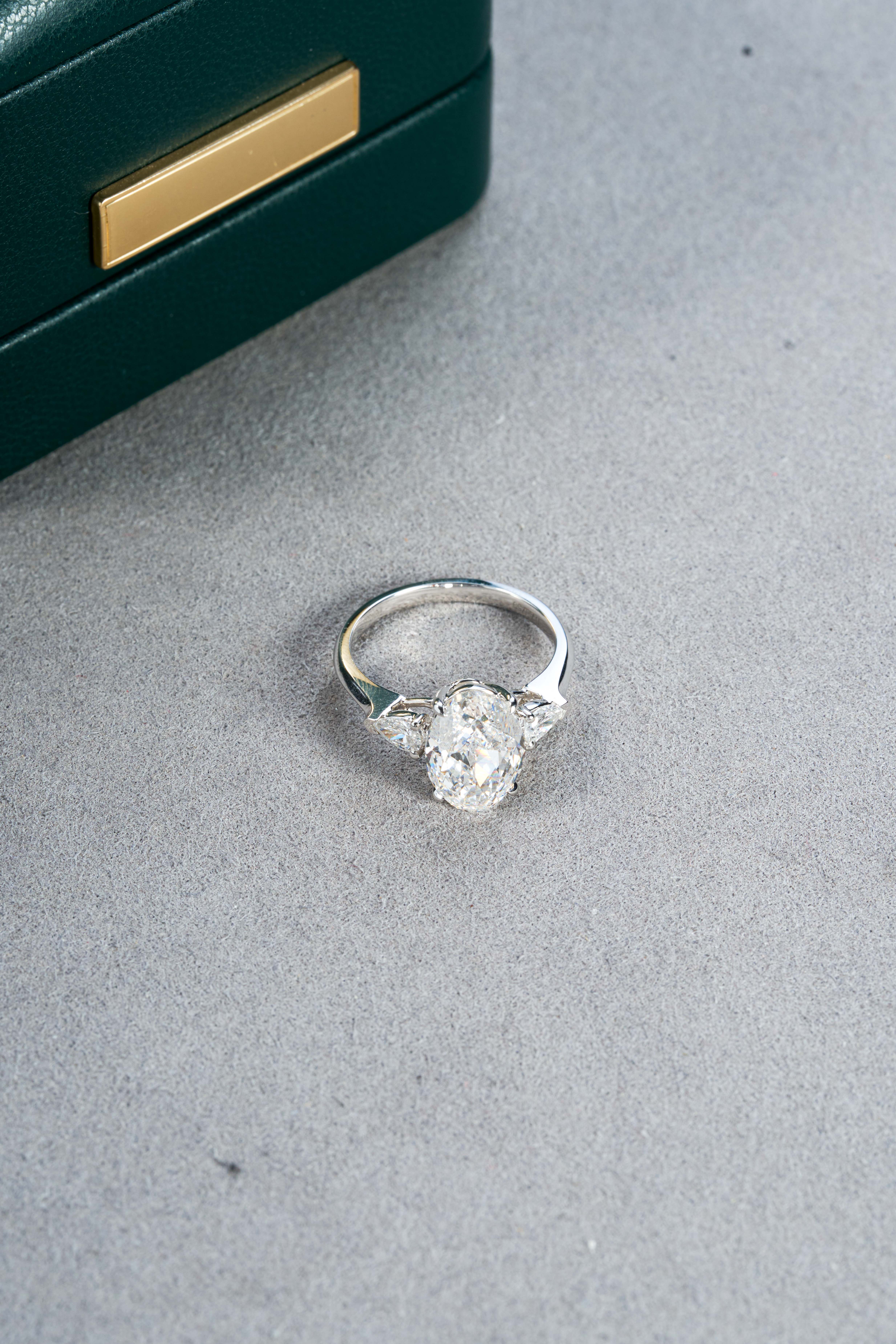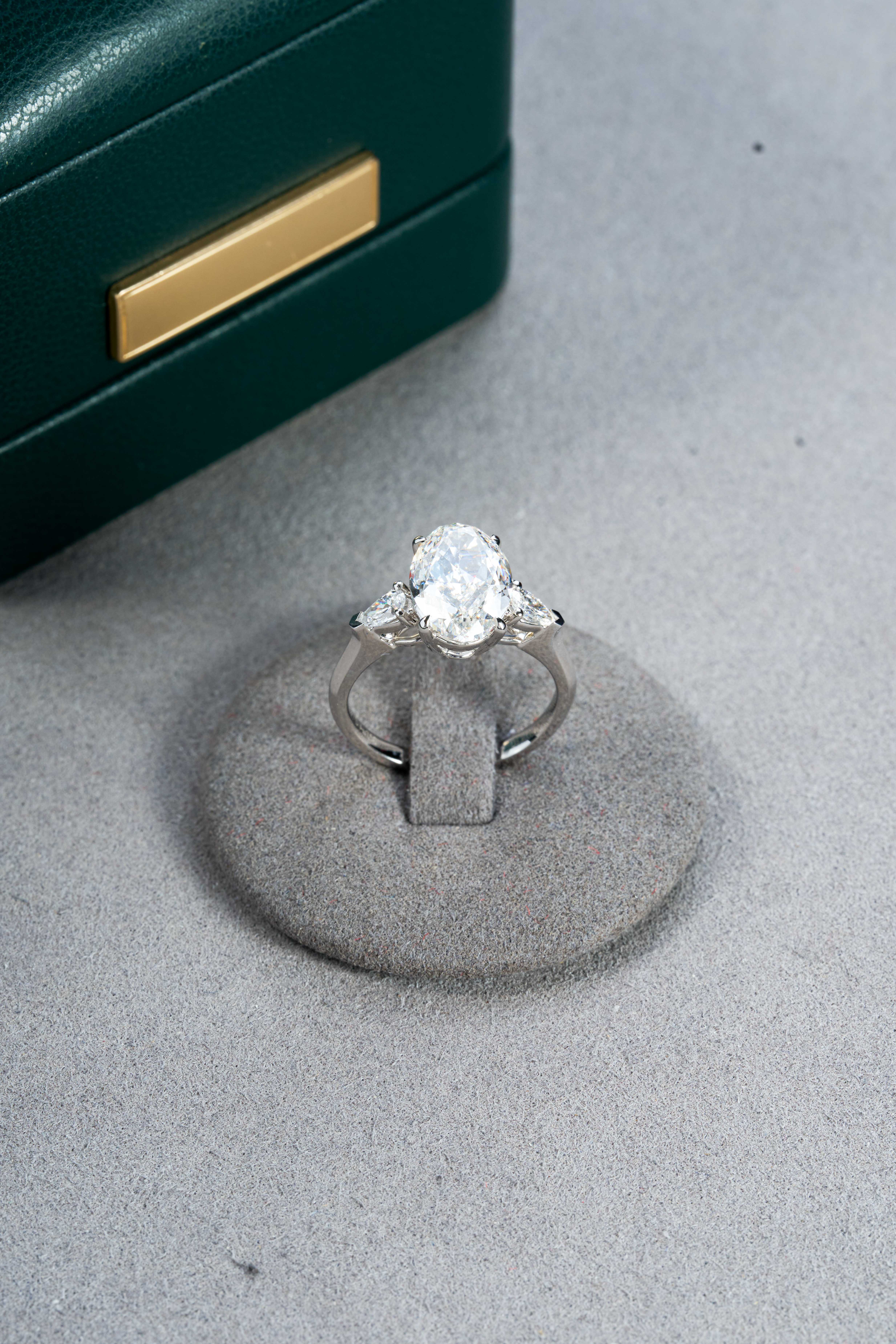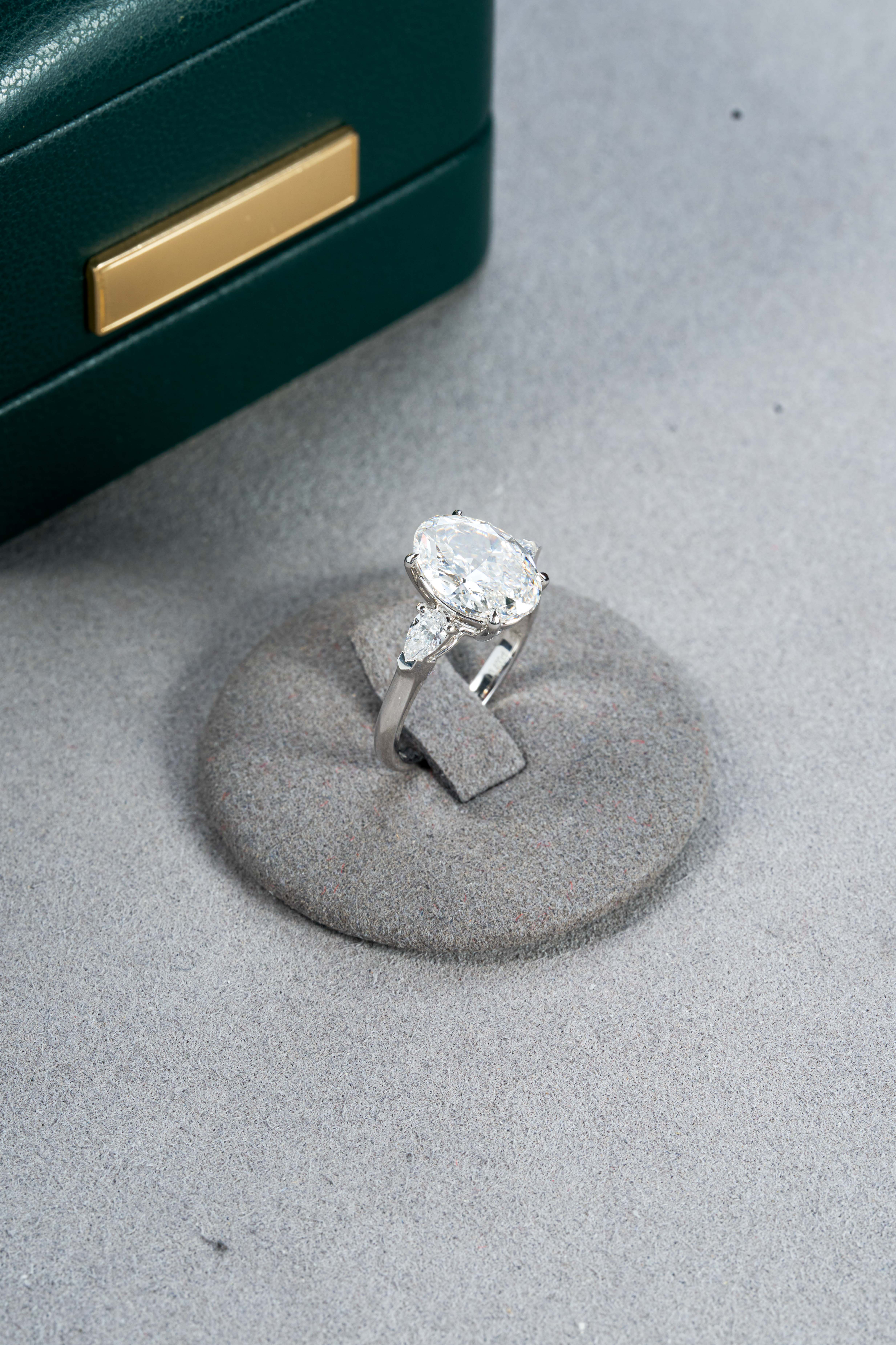 18K White Gold Oval Center Three-Stone Diamond Ring