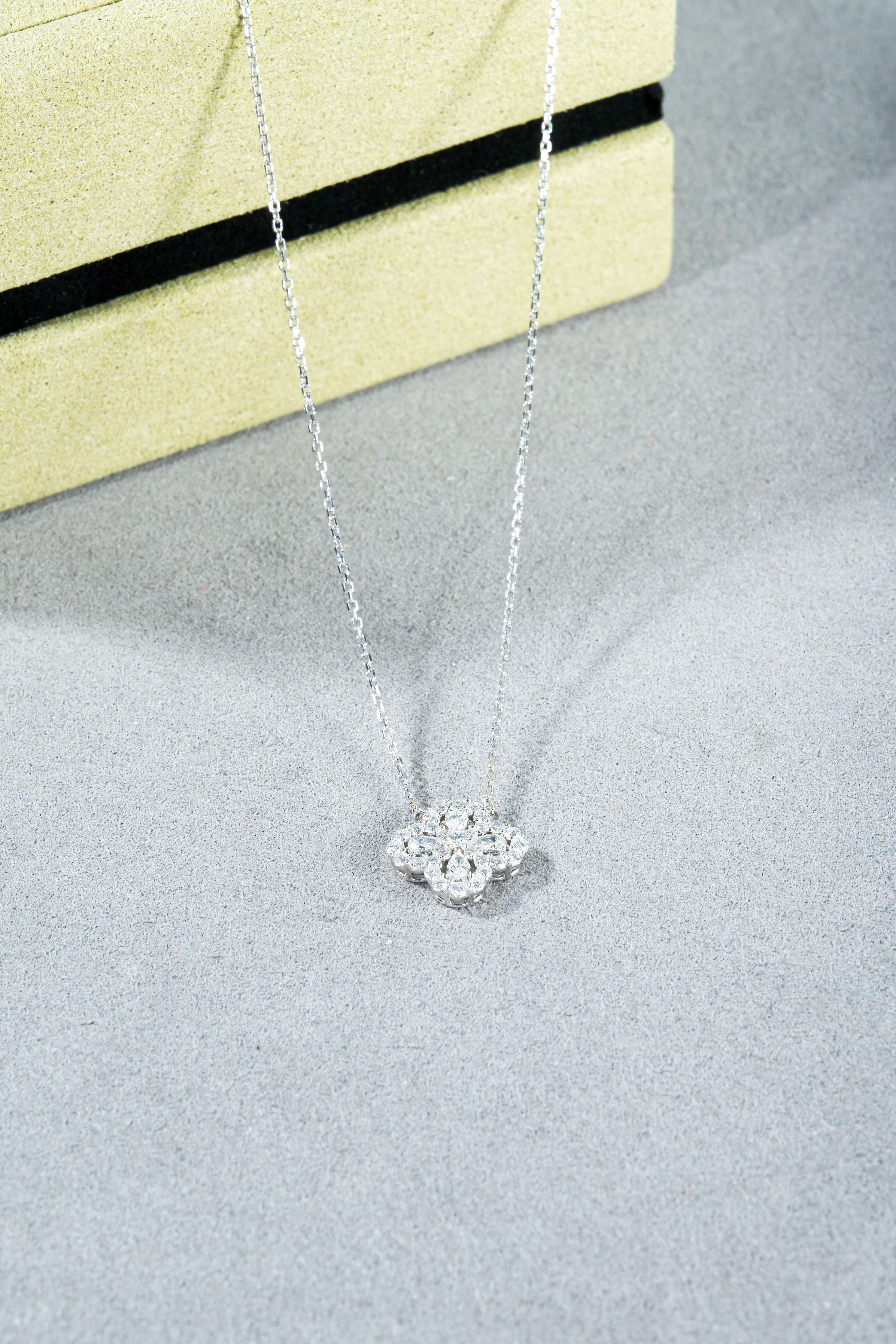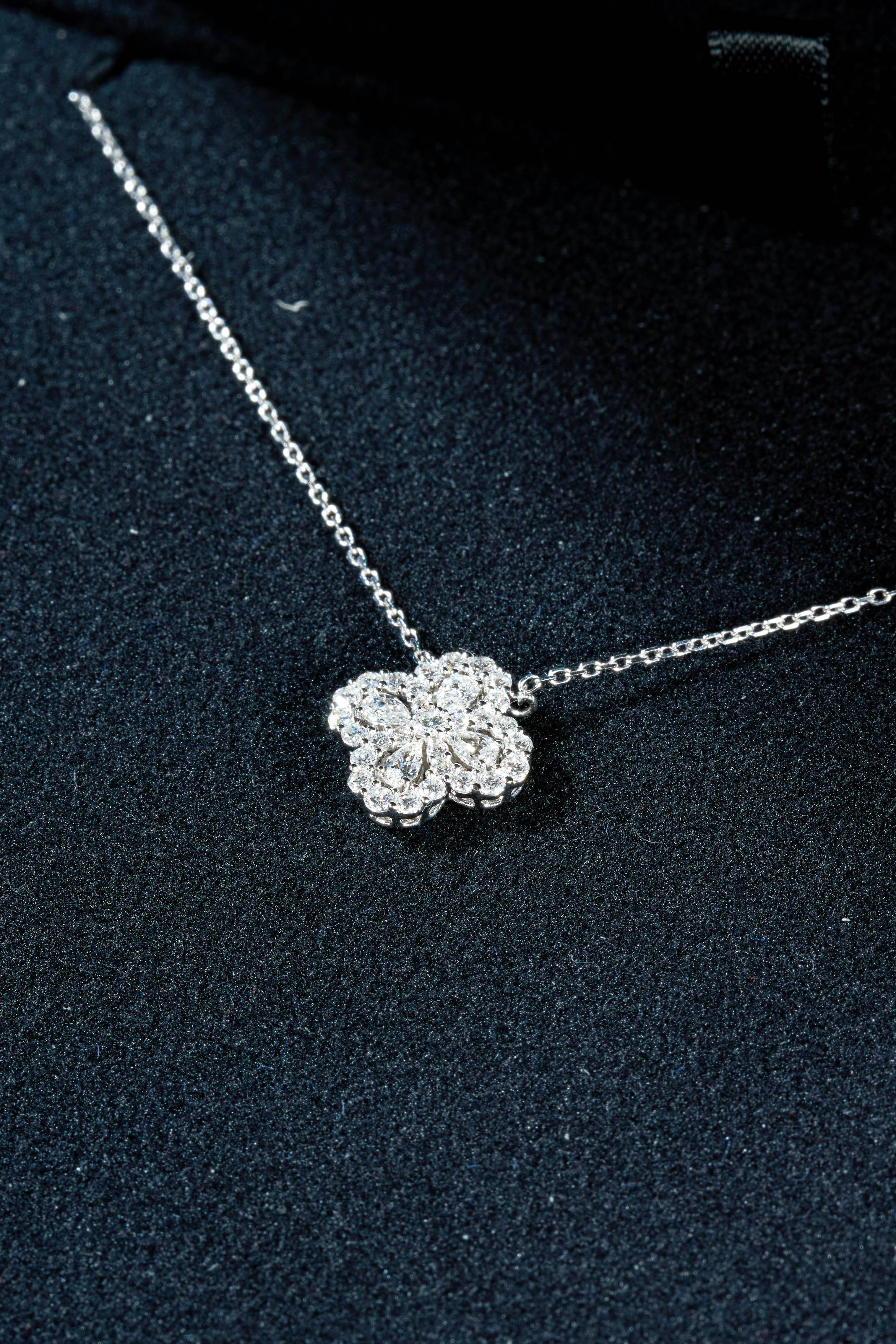 White gold full diamond clover necklace
