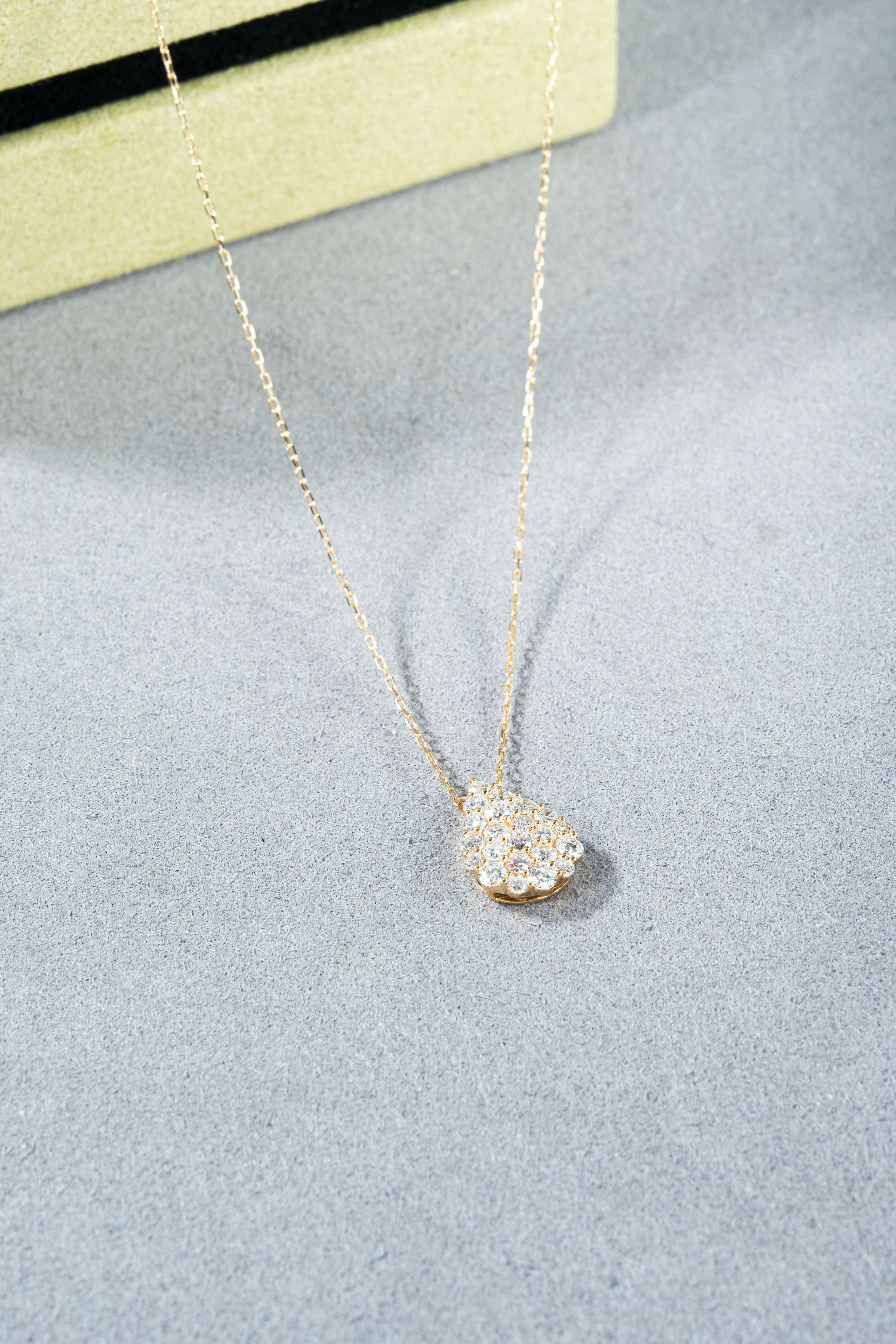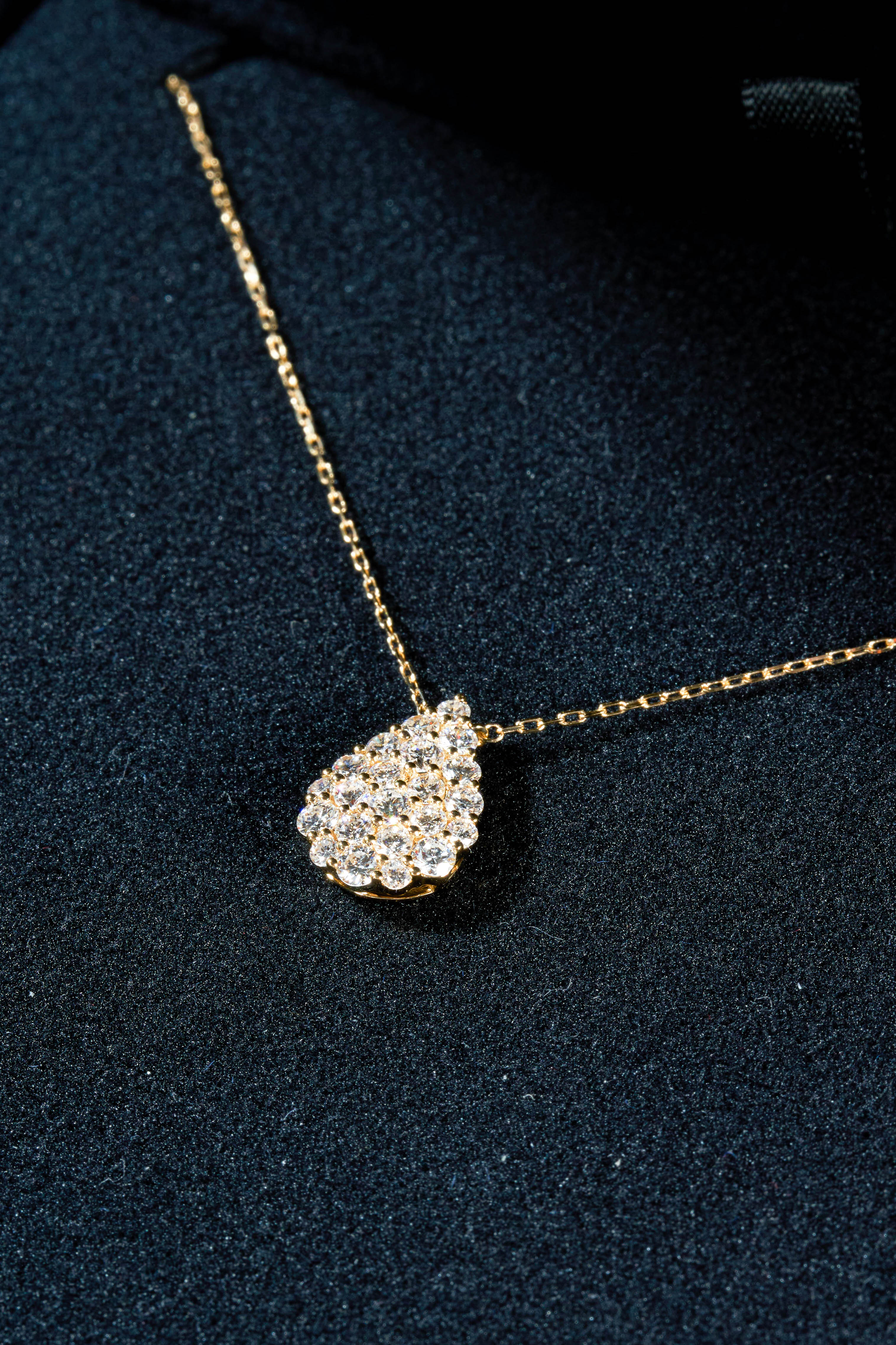 Gold-colored pear-shaped full diamond necklace