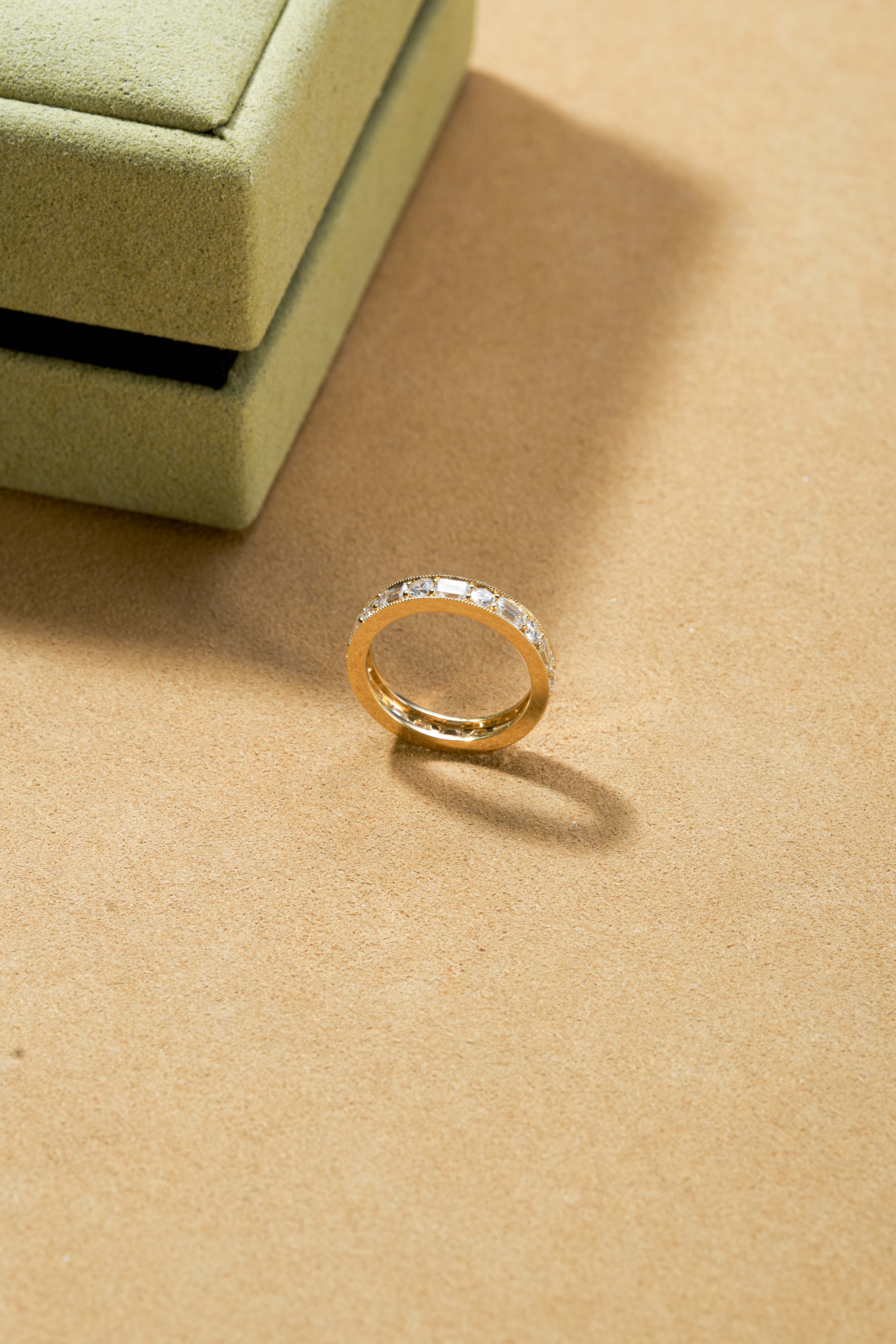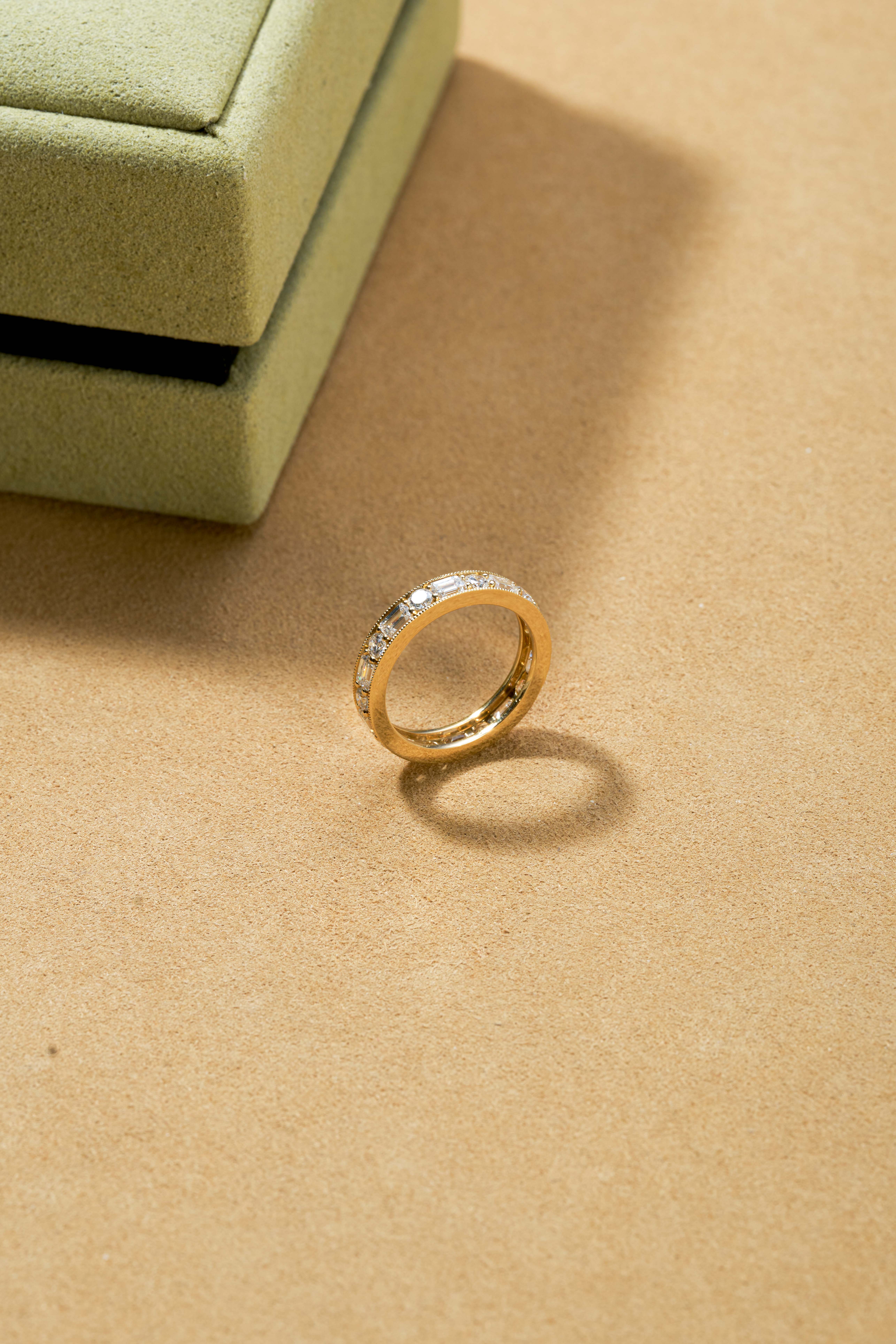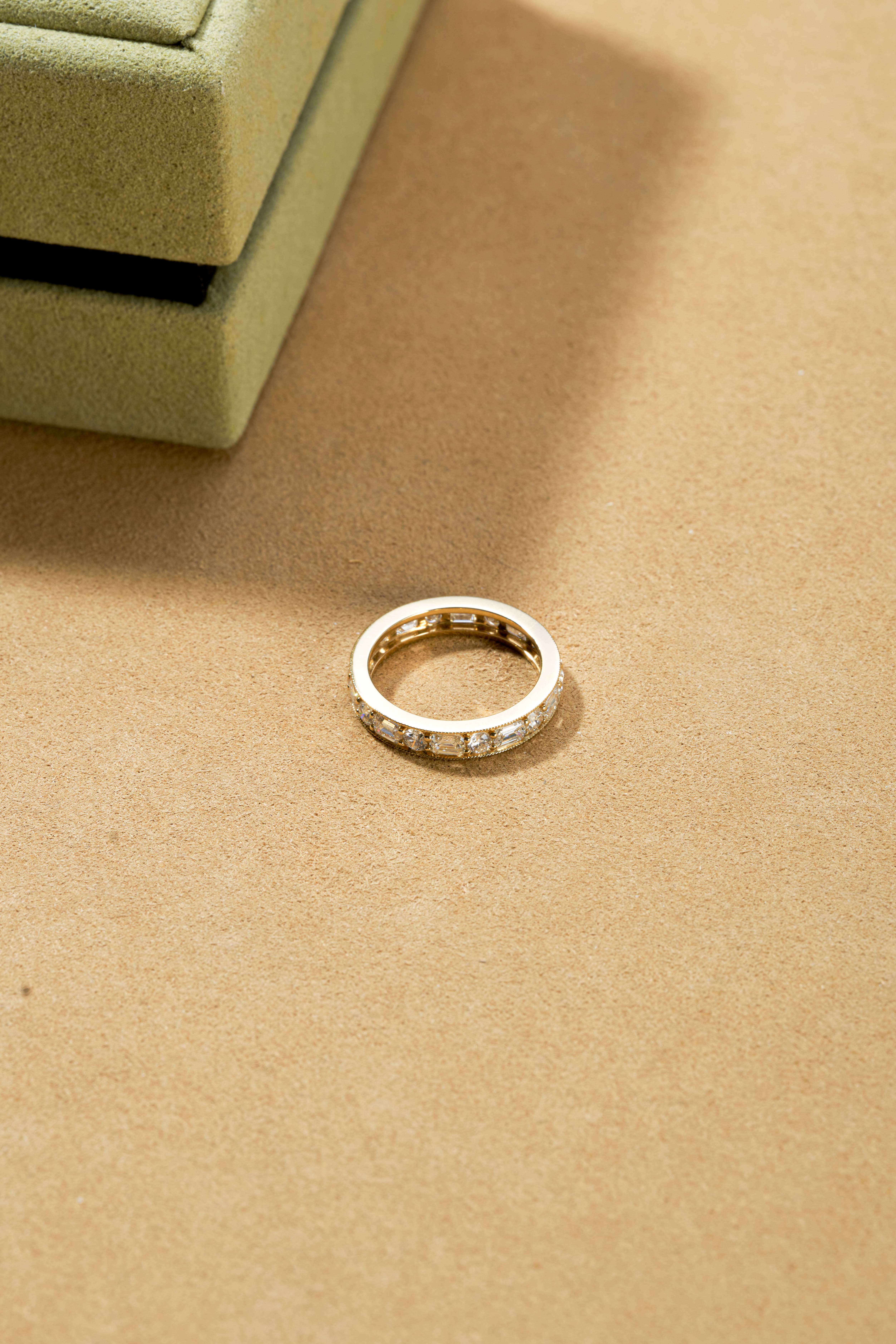 Gold-colored emerald-cut solitaire ring
