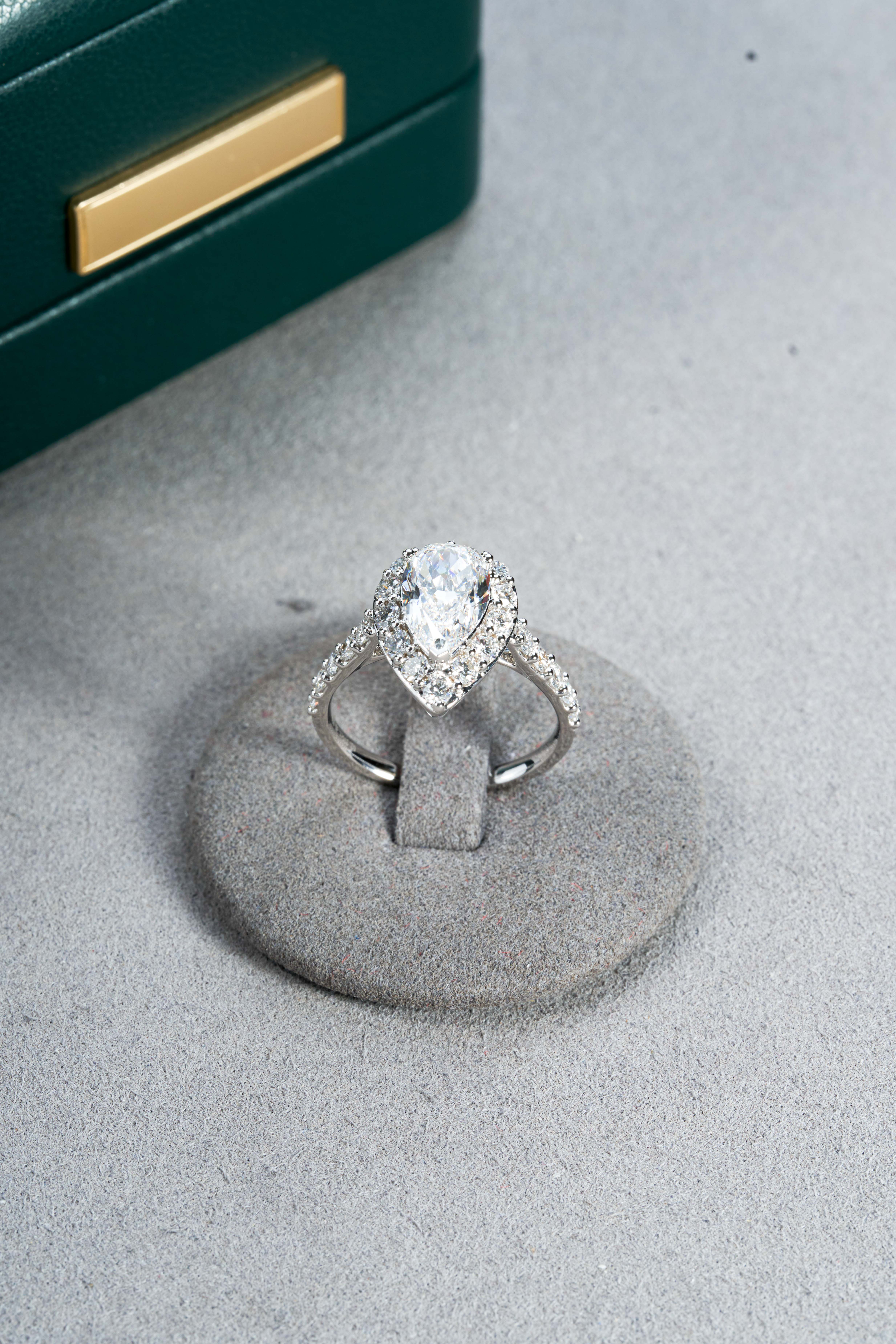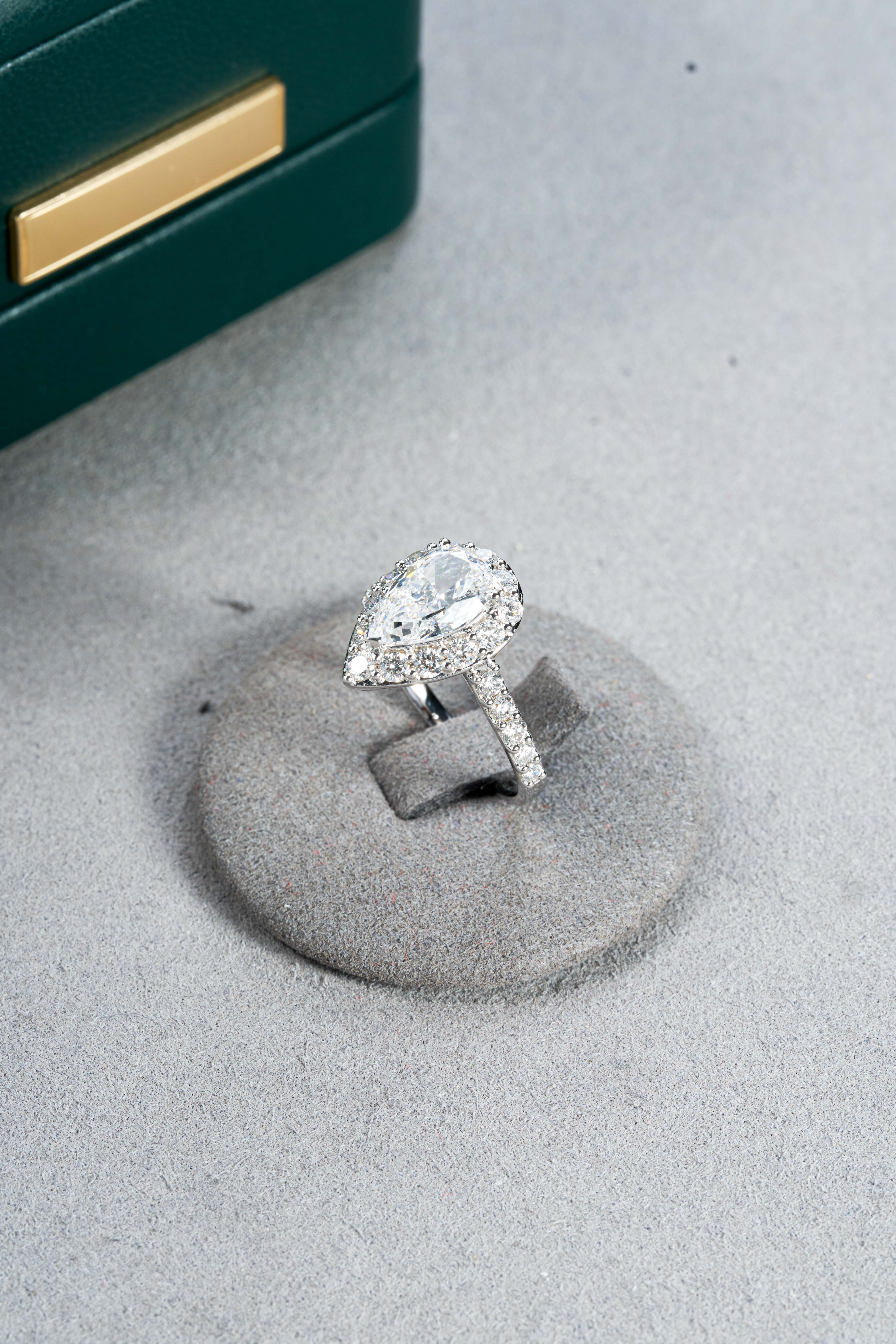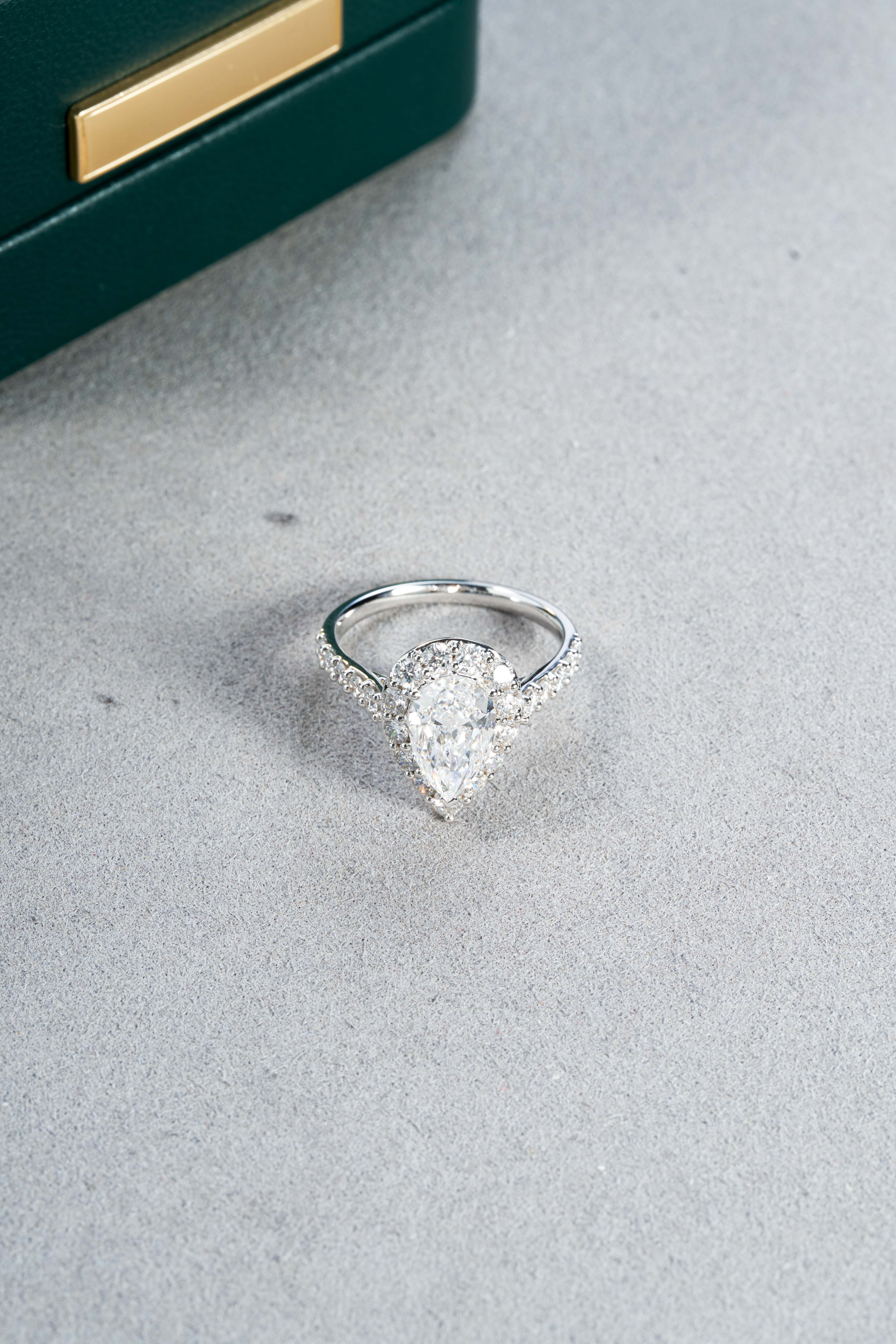 White gold pear-shaped halo diamond ring