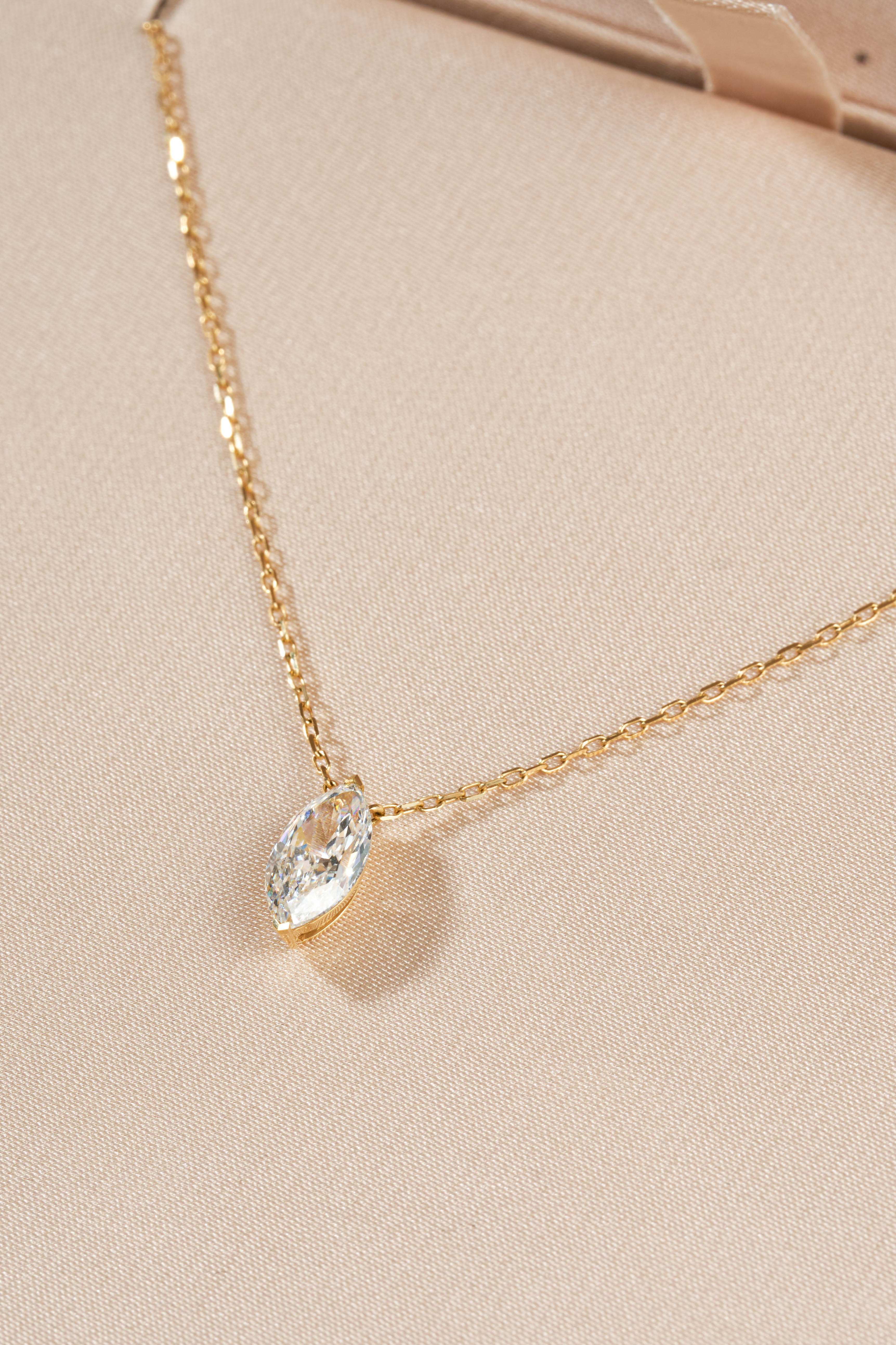 Yellow Gold Marquise Cut Solitaire Necklace