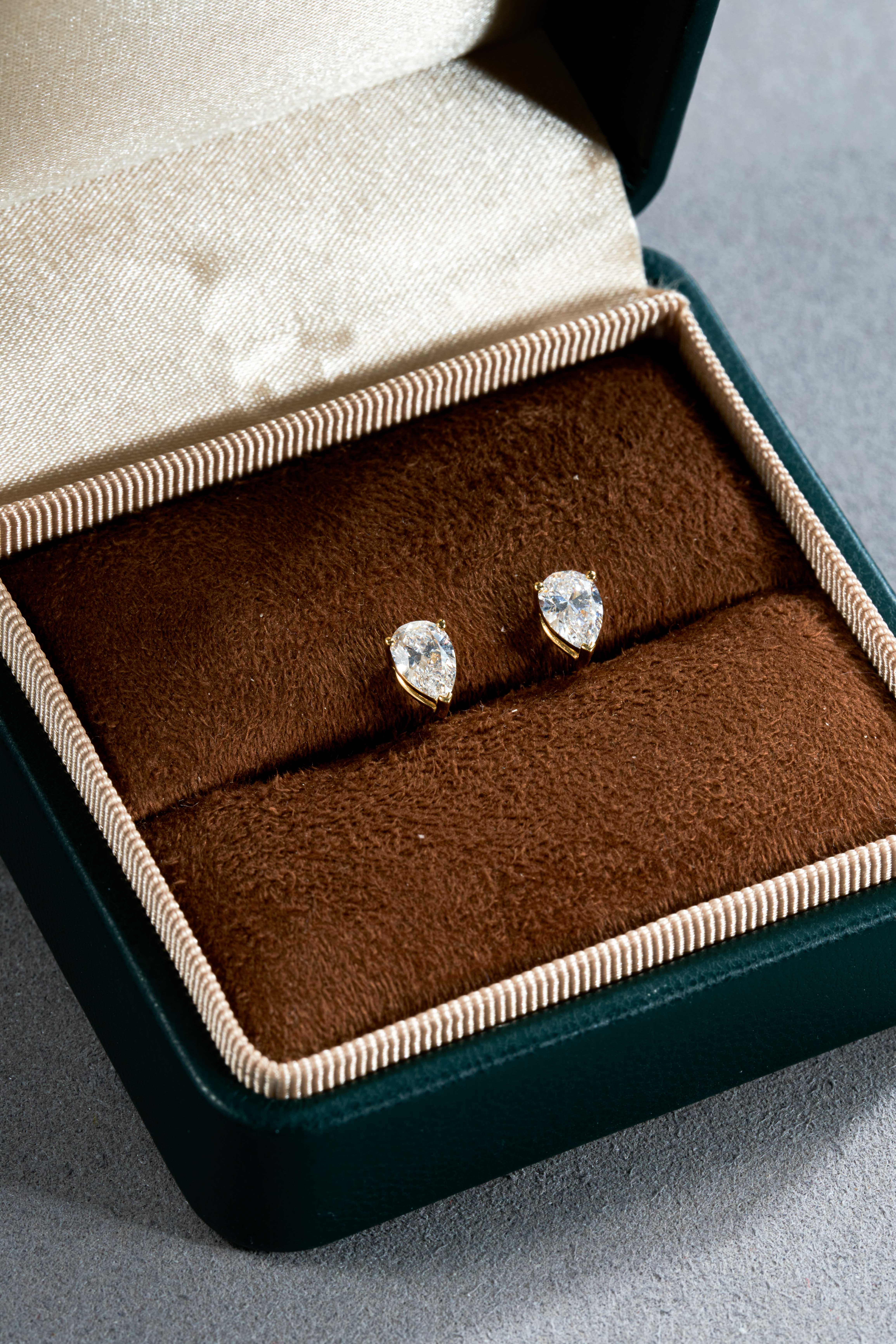 Yellow Gold Pear Cut Stud Earrings